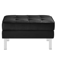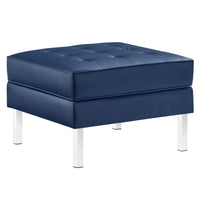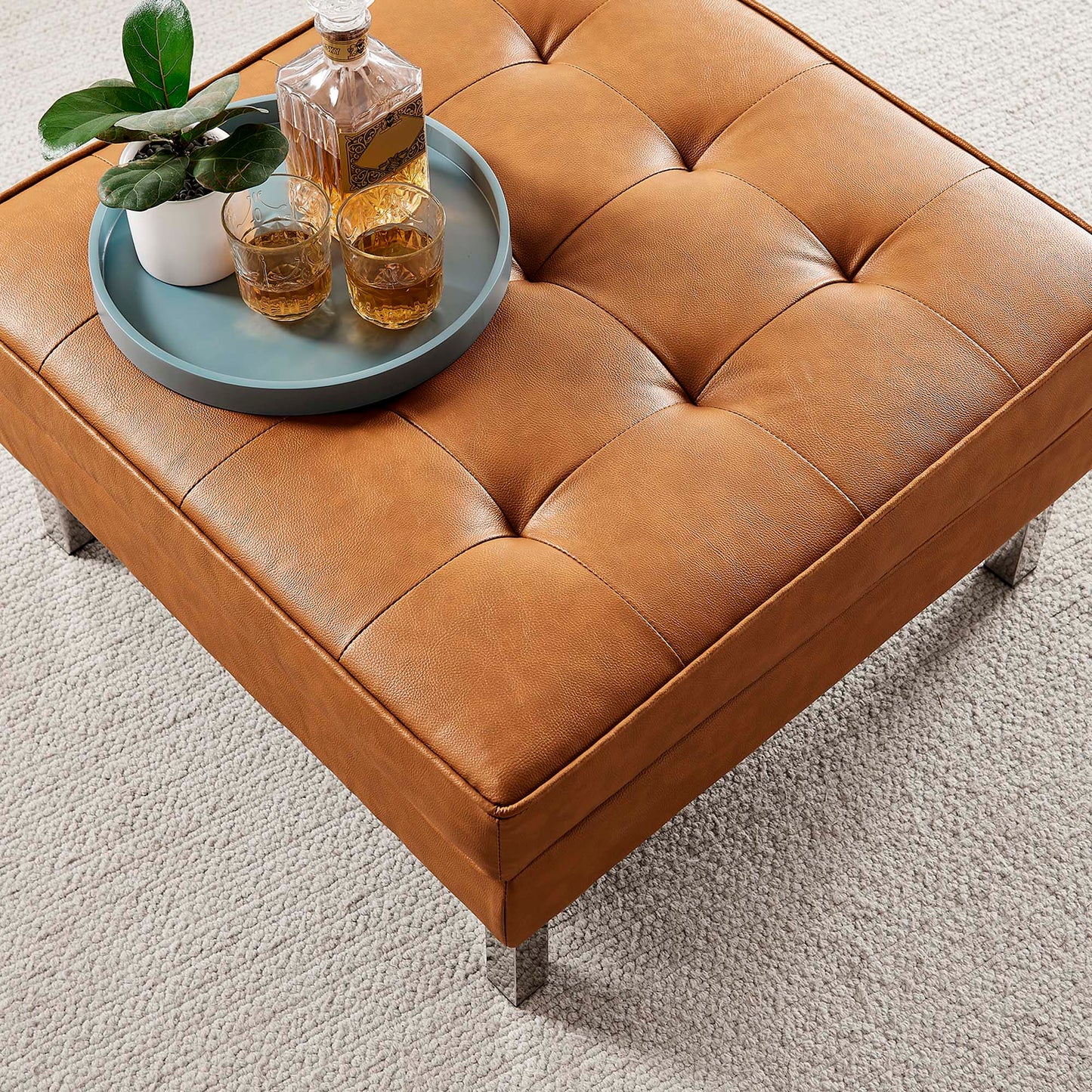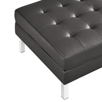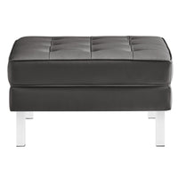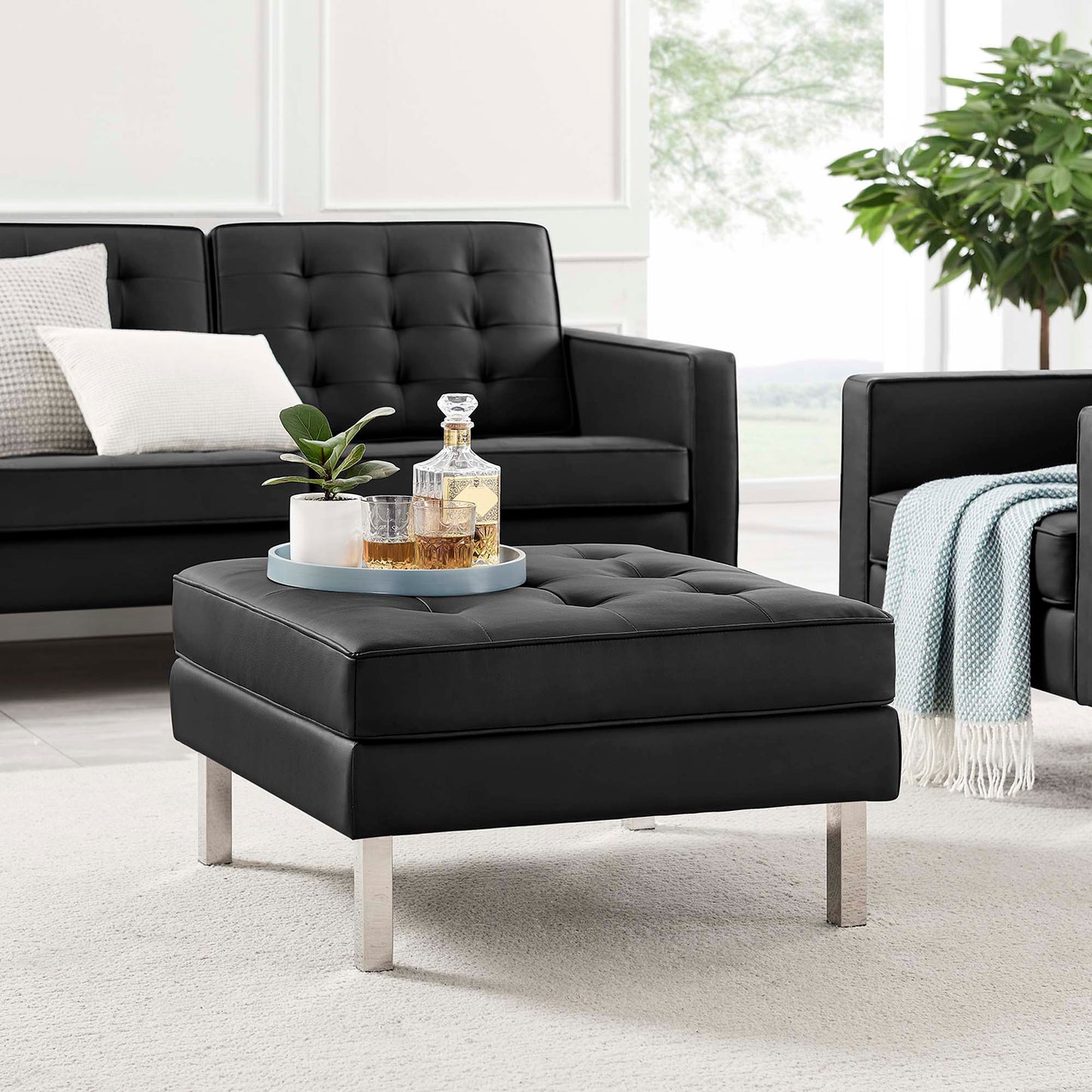 Revolutionize your living room furniture with the iconic Loft Vegan Leather Ottoman. Adding visual depth to your living room or lounge space, Loft features soft and durable vegan leather upholstery accented with classic biscuit tufting. This modern ottoman showcases a captivating linear design, tubular stainless steel legs, and non-marking foot caps that protect flooring. Inspired by the richness of mid-century modern style, this upholstered ottoman is an ideal choice for living rooms, office reception areas, and lounge spaces. Ottoman Weight Capacity: 330 lbs.