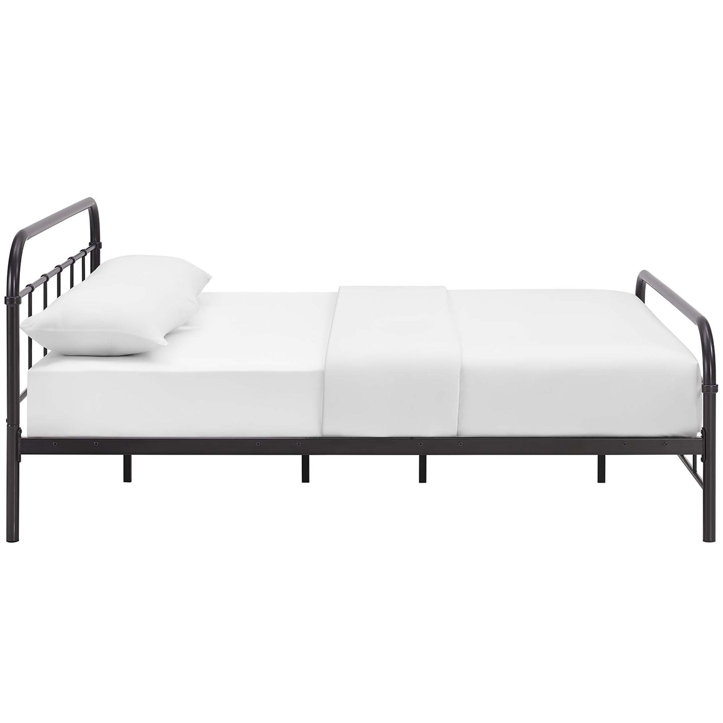 Reap styling success through a grafted blend of vintage farmhouse and contemporary decor with the Maisie Platform Bed. Able to comfortably hold up to 1323 lbs., Maisie was designed with vintage look steel piping to promote the serene tranquility of rustic cottages and country home decor. Complete with a sturdy and reliable construction, and a reinforced center beam, Maisie eliminates the need for a box spring and supports mattress types such as memory foam, spring, latex, and hybrid. Mattress not included.
