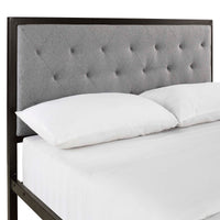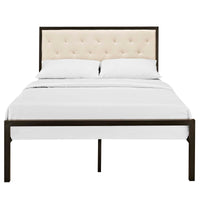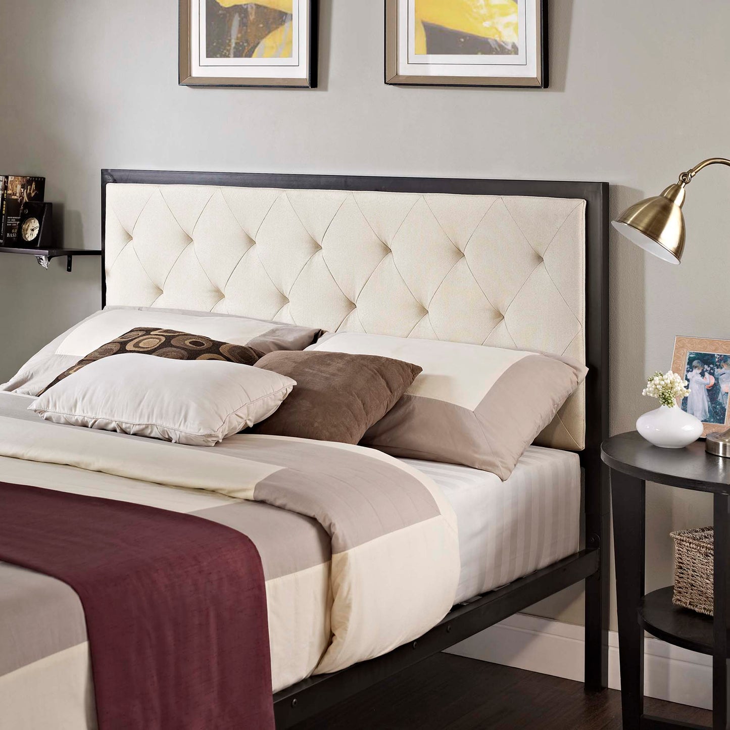 Sleep peacefully with a platform bed solid in both style and construction. Mia comes with a powder-coated steel frame that offers sturdy and long-lasting support, while the fabric headboard with deep tufted buttons adds a touch of magnificence to an otherwise minimalist design. The Mia Platform Full Bed does not require a box spring. Full mattress not included.