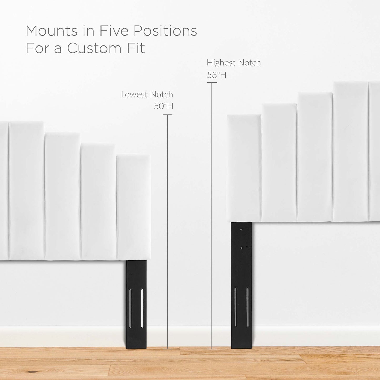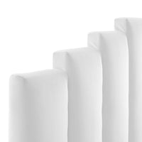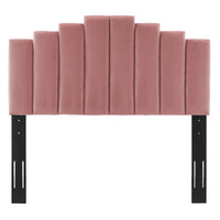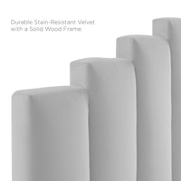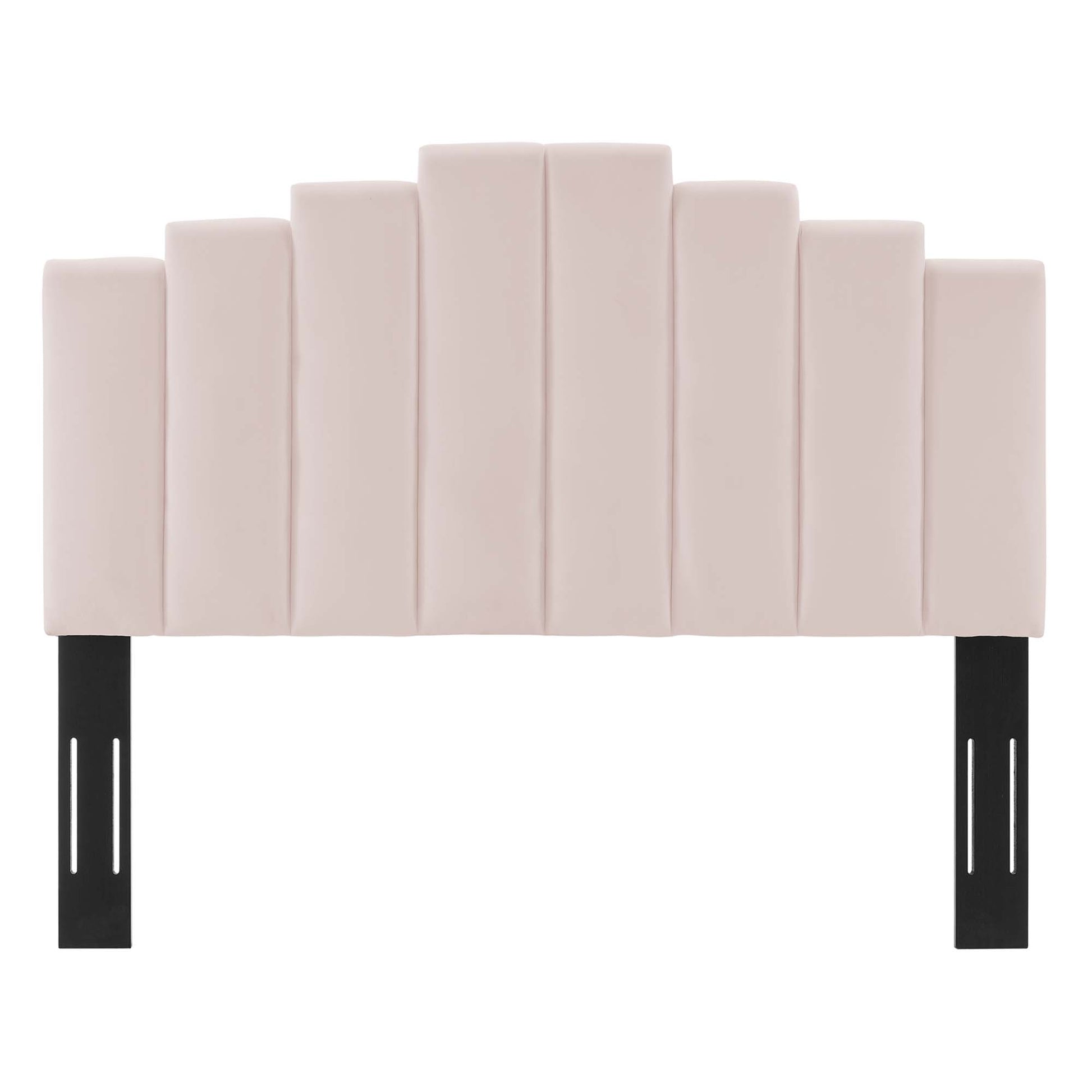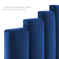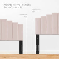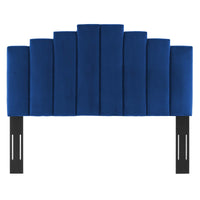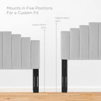 Refresh your master bedroom or guest suite with the luxurious style of the Noelle Performance Velvet King/California King Headboard. Abounding in glam deco style, this king or Cali king headboard features a modern twist on classic channel tufting with velvety panels ascending upwards in an arching design. This king headboard comes upholstered in soft, stain-resistant performance velvet upholstery that grants rich texture to the elegant form. With a sturdy construction and adjustable height, this headboard for king or California king beds is densely padded with foam to create a comfortable spot to sit back and relax while reading, lounging, or watching TV in bed.
