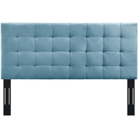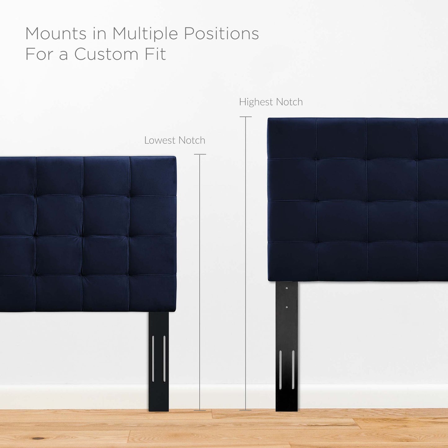 Enjoy simple elegance with the square-patterned design of Paisley. Featuring timeless biscuit tufting, Paisley updates the kid room, dorm, or guest bedroom with charming appeal. A stylish full or queen headboard, Paisley is made of soft, stain resistant performance velvet covering a durable fiberboard and plywood frame with dense foam padding. Solidly constructed with extra wide black-stained wood post legs that fit twin bed frames, choose from three mounting positions with this tall, padded headboard that ranges from 46 - 54 inches in height. The Paisley twin headboard is a lavish addition that offers quality support while reclining and relaxing.