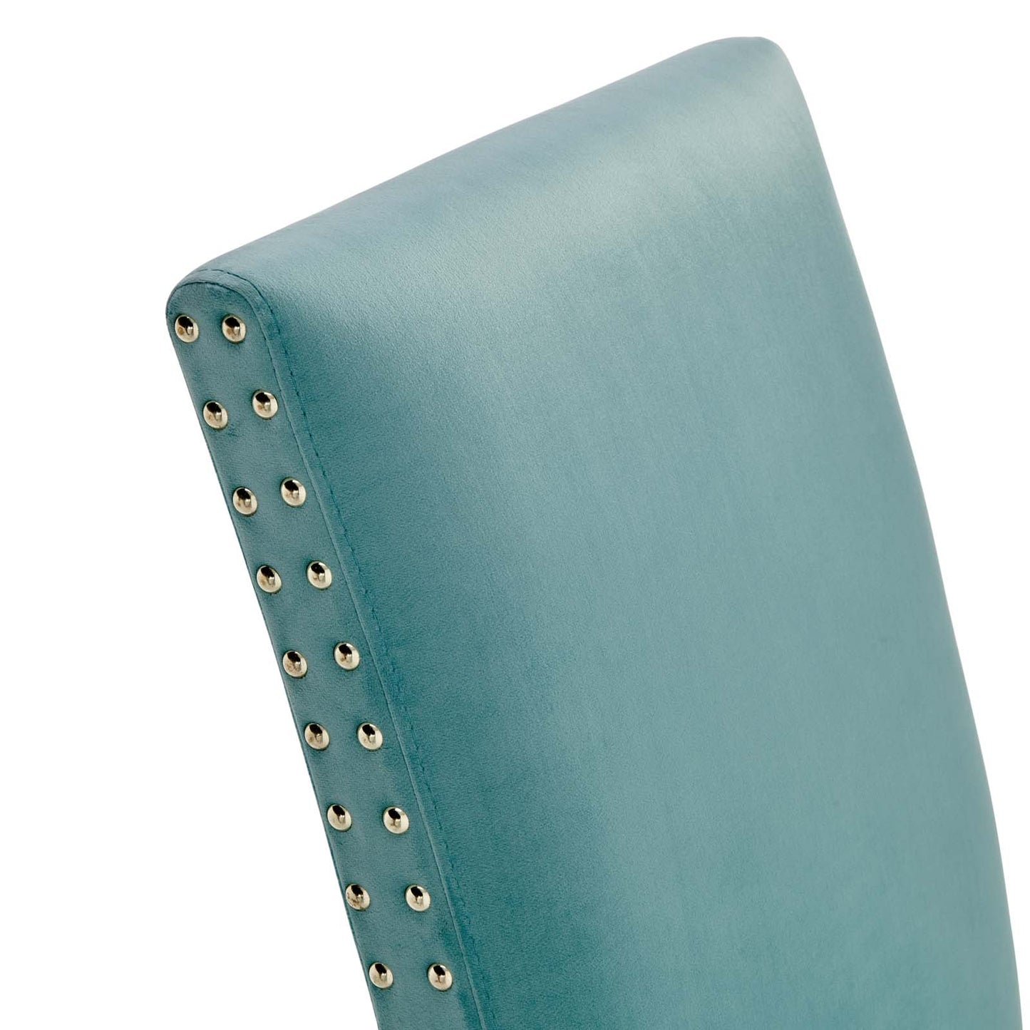 Wrap up moments of quality seating with the Parcel Upholstered Performance Velvet Dining Room Side Chair. Finely upholstered in soft, stain-resistant performance velvet upholstery with elegant nailhead trim, the Parcel Accent Chair delivers a vintage modern offering that enhances the dining room experience in a subtle and unassuming way. Padded with dense foam and supported by solid stained rubberwood legs, the Parcel Side Chair is a stylish addition to your dining room, living room, lounge room, or office. Chair Weight Capacity: 285 lbs. Assembly Required.