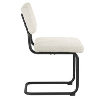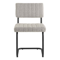 Bring mid-century style to your dining space with the Parity Dining Chairs - Set of 2. These side chairs feature perfectly textured boucle fabric upholstery that is channel tufted for a retro modern look. The powder-coated tubular metal frames provide a sleek silhouette and superior durability with a weight capacity of 330 lbs. Resting on a sled base, these dining chairs are equipped with non-marking foot pads to protect flooring and dense foam padding for added comfort and support. With both retro modern and vintage style, this set of two dining side chairs brings a unique flair to your dining room, kitchen space, or living area. Assembly is required.