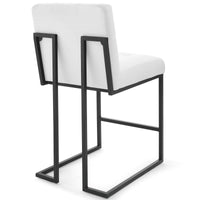 Maximize your dining room decor with Privy Counter Stool Set of 2. A glam deco kitchen counter stool, Privy features soft and durable fabric upholstery for a streamlined modern look. This counter height stool rests atop a sleek matte black stainless steel geometric base with a footrest that will elevate your dining experience. No assembly required.