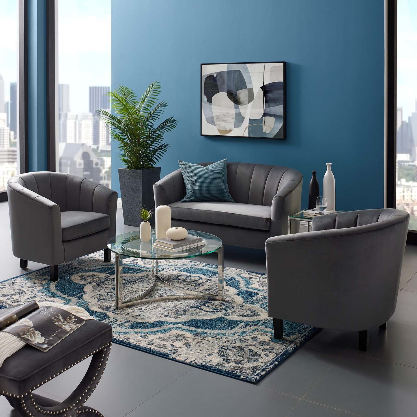 Prospect Channel Tufted 3 Piece Performance Velvet Set