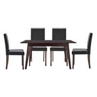 Offer your dining decor an effortlessly elegant update with the 5 Piece Prosper Dining Room Set which features one 47” Rectangle Dining Table and four Modern Faux Leather Upholstered Parsons Dining Chairs. Defined by chic simplicity, this modern set completes your dining experience with its sturdy construction and comfortable seating experience. Dining Table is constructed with MDF top with four tapered wood legs and Dining Chairs have a rubberwood frame, cushioned with dense foam padding, and covered with smooth faux leather upholstery. Prosper is a modern Parsons chair set that enhances any contemporary home or apartment. Assembly Required. Chair Weight Capacity: 331 lbs.