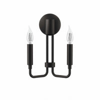 Illuminate your living space with the artful elegance of the Rekindle 2-Light Wall Sconce that complements a variety of decors from mid-century modern to minimalist contemporary. A timeless piece for a living room, dining room, entryway, hallway, home office, or bathroom, this sconce light features two upturned arms extending out from a cylindrical centerpiece and round backplate with ceramic lamp holders to host exposed light bulbs. The Rekindle Light Fixture is damp rated and requires two E12 light bulbs 60W max or LED equivalent (not included). Professional installation required.