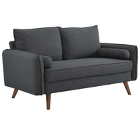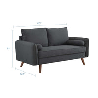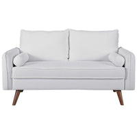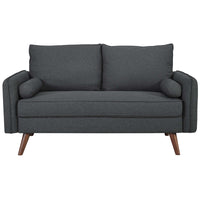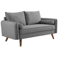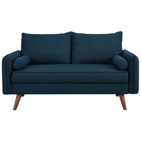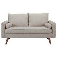 Give new vitality to your home or apartment living space with Revive. With a comfortable yet tailored profile and two bolster pillows, Revive beckons guests to sit and stay a while. Its soft fabric upholstery grants this loveseat an approachable appeal that’s echoed by its calming color, clean lines, and splayed wood legs. Arriving directly to your doorstep in a convenient shipping box, Revive easily unpacks to quickly become the most well-loved lounge spot in your home.