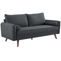 Give new vitality to your home or apartment living space with Revive Sofa and Loveseat Set. With a comfortable yet tailored profile and matching bolster pillows, Revive beckons guests to sit and stay a while. Its soft fabric upholstery grants this sofa an approachable appeal that’s echoed by its clean lines and splayed wood legs. Arriving directly to your doorstep in a convenient shipping box, Revive easily unpacks to quickly become the most well-loved lounge spot in your home.