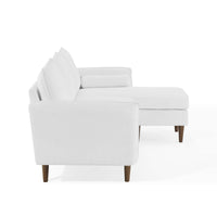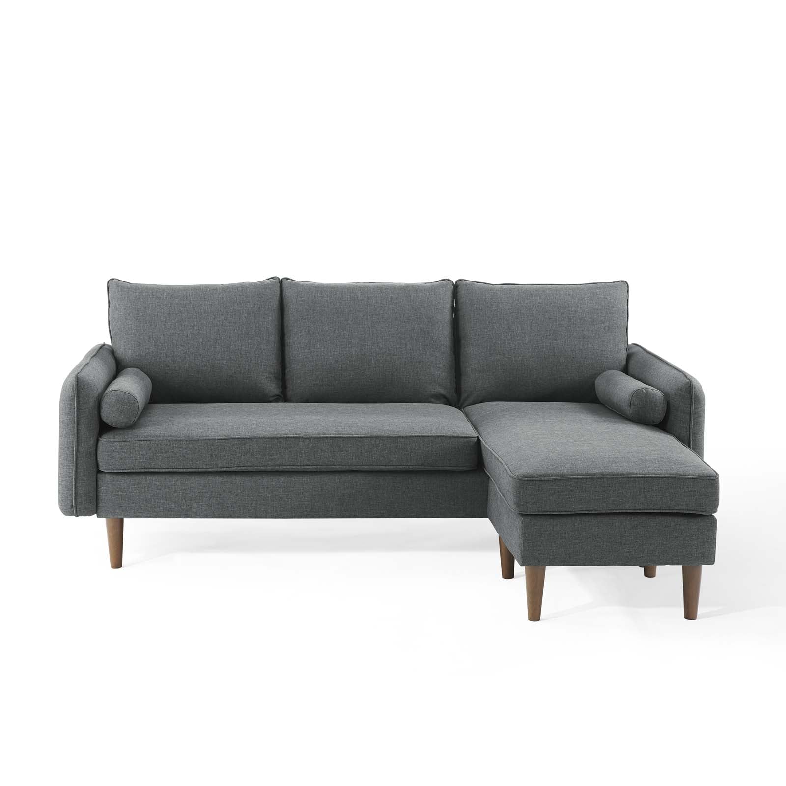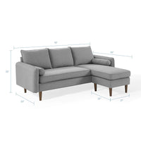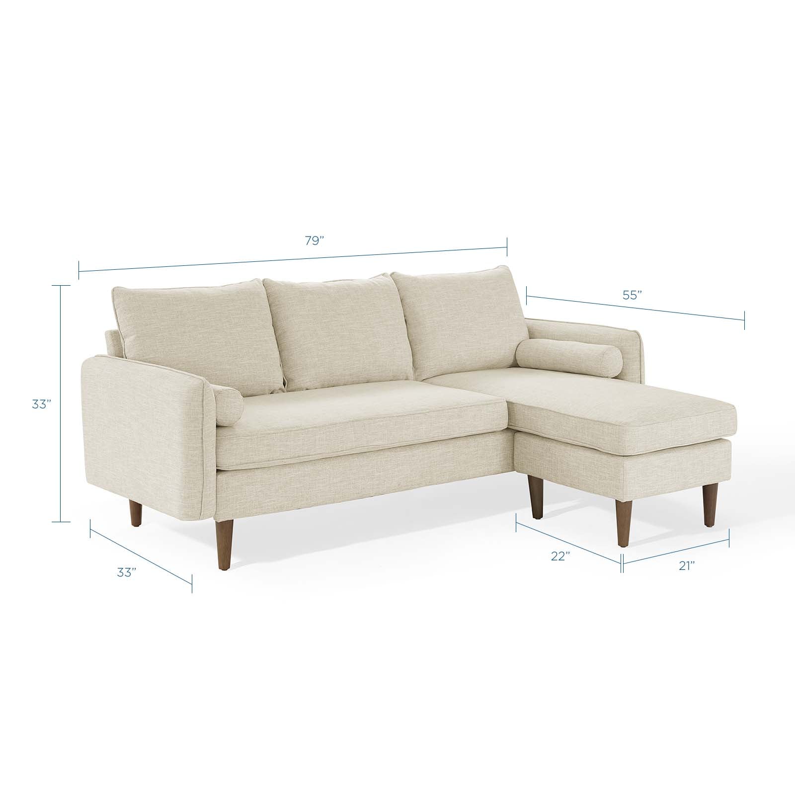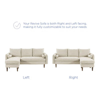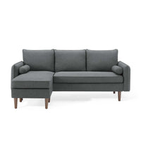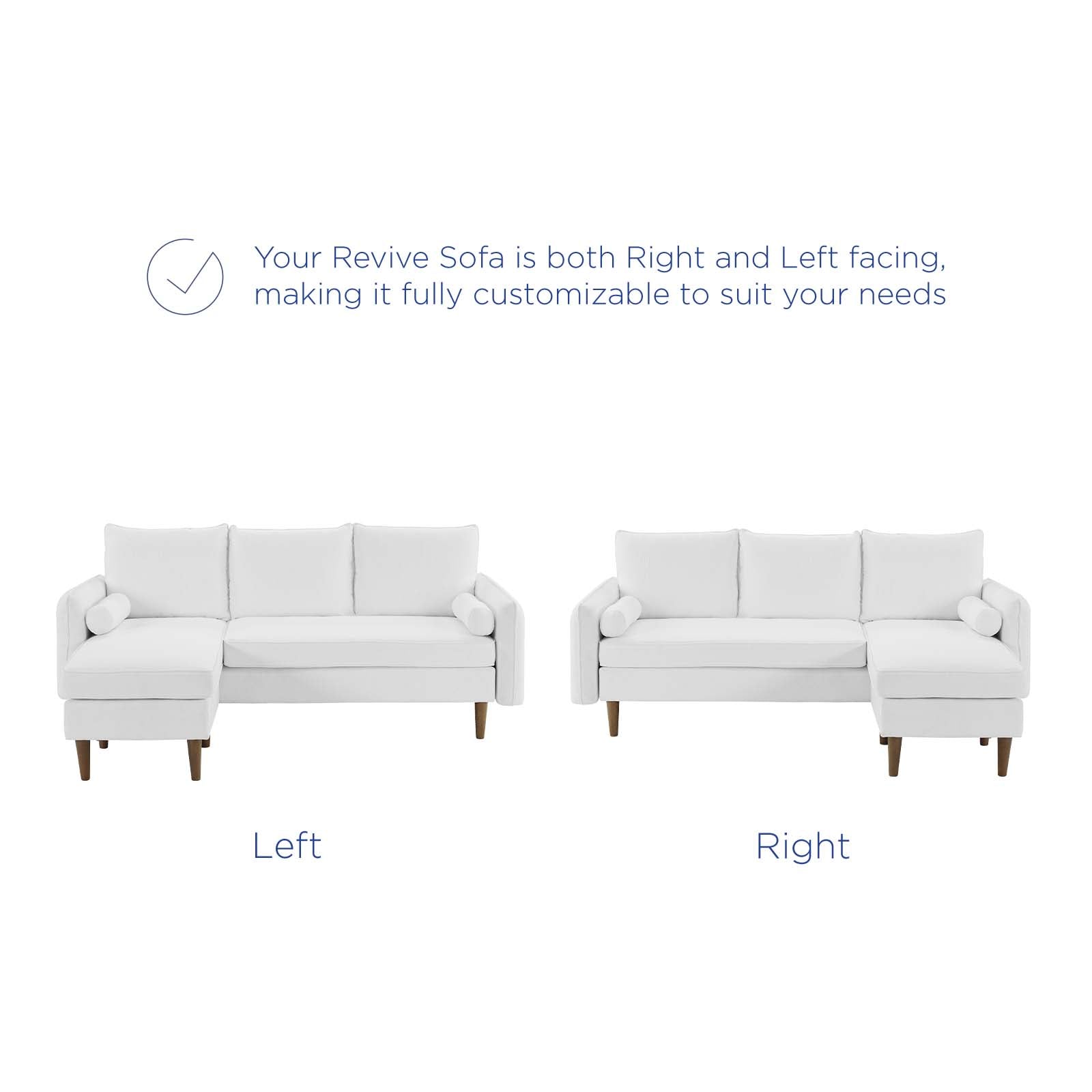 Give new vitality to your living space with the Revive Upholstered Fabric Right or Left Sectional Sofa Sectional Sofa. With a comfortable yet tailored profile and two bolster pillows, Revive Living Room Couch beckons guests to sit and stay a while. Dense foam padding and a pocket coil spring system provide a luxurious seating experience. Soft polyester fabric upholstery grants this three-seater sectional sofa with a right or left facing chaise an approachable appeal that’s echoed by its calming color, clean lines, and splayed and tapered wood legs with non-marking foot caps. The Revive Right-Facing Sofa has a built in ottoman that allows for a variety of comfortable lounging combinations and accommodates a multiple decor styles in your living room, lounge room, or other seating area. Weight Capacity: 900 lbs.