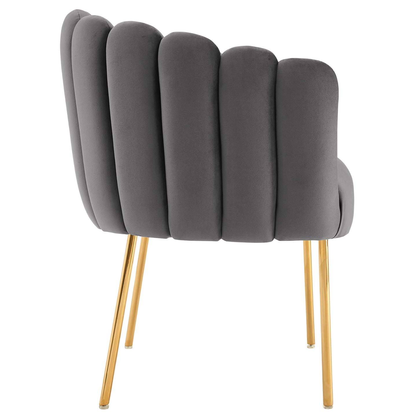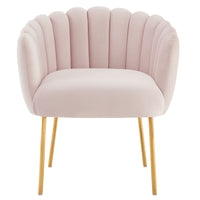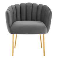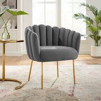 Fashioned with vertical channel tufting, artfully arranged into a welcoming arched frame, the Sanna Performance Velvet Armchair distinguishes with retro glam appeal in mid-century modern or eclectic decors. Dare to enchant and inspire in your living room, bedroom, or lounge area with this elite velvet accent chair. Sanna dispenses immense comfort with dense foam padding and a webbed support system. Upholstered in stain-resistant performance velvet and fitted with non-marking foot glides, the Sanna armchair delights in the entryway or dining room and makes a gracious accent or reading chair. Weight Capacity: 331 lbs.