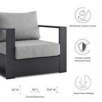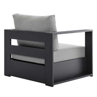 Enliven your alfresco spaces with the Tahoe Aluminum Outdoor Patio Armchair. This modern outdoor patio chair is constructed with well-crafted, durable powder-coated aluminum, dispensing contemporary elegance in your outdoor lounge spaces. With dense foam padding for sustaining comfort before and after a dip, Tahoe is perfect for poolside lounging with a sunproof, water-resistant fabric-covered seat and backrest. The removable, stain-resistant cushions render this outdoor armchair low maintenance and high performing. Tahoe makes an accommodating weatherproof patio chair for al fresco daydreaming. This durable outdoor armchair features non-marking foot glides to protect your deck or patio floor and comes with easy-to-follow assembly instructions. Weight Capacity: 331 lbs.