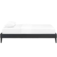Accelerate your bedroom decor with the Tessie Platform Bed. Made with a solid wood frame upholstered in vinyl, Tessie features tapered wood legs, plastic foot glides, ten sturdy wood slats with a centered supporting bar and two support legs for enhanced stability. Due to the wooden slat support system, the use of a box spring is unnecessary. Tessie supports memory foam mattresses such as our Aveline series, and is compatible with one of our headboard styles: Jessamine, Terisa, Laura, Phoebe, Camille, and Josie. Perfect for mid-century modern, minimalist and contemporary bedrooms. Mattress not included.