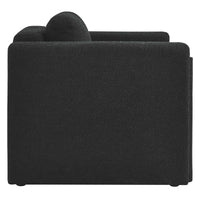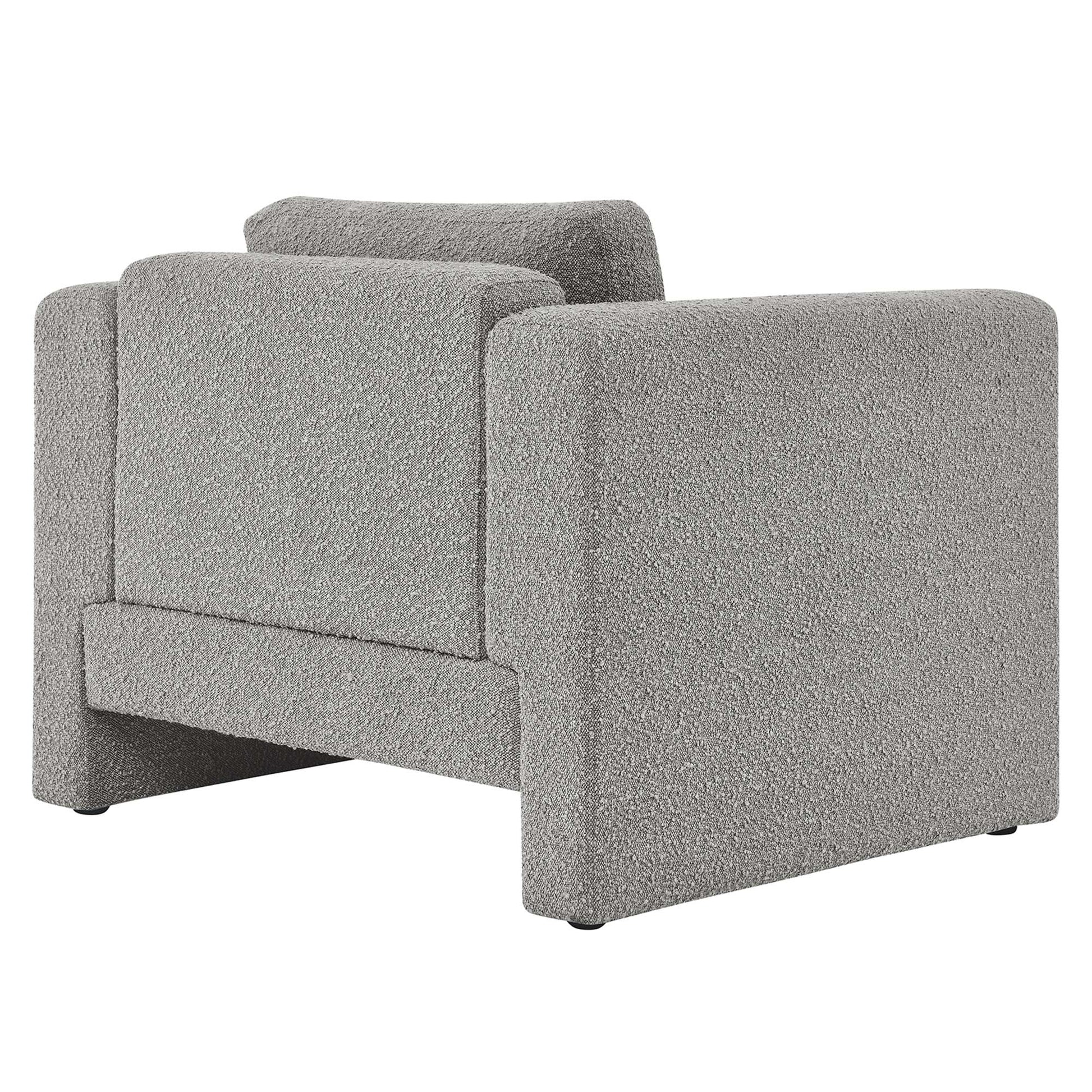 Indulge in the epitome of modern luxury and sophistication with the Visible Boucle Accent Armchair. Crafted with a sturdy wood and plywood frame, this armchair exudes modern elegance with its sleek lines and tailored silhouette. The adjustable non-marking foot pads protect your flooring while providing sturdy stability. Sink into cozy comfort with the dense foam padding and durable boucle fabric upholstery with a charming nubby texture. The cushions and cushion covers are removable to make cleaning a breeze. Enjoy unmatched support with the pocket coil springs that offer a premium seating experience. Assembly is required with easy to follow assembly instructions. Weight Capacity: 330 lbs.