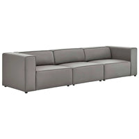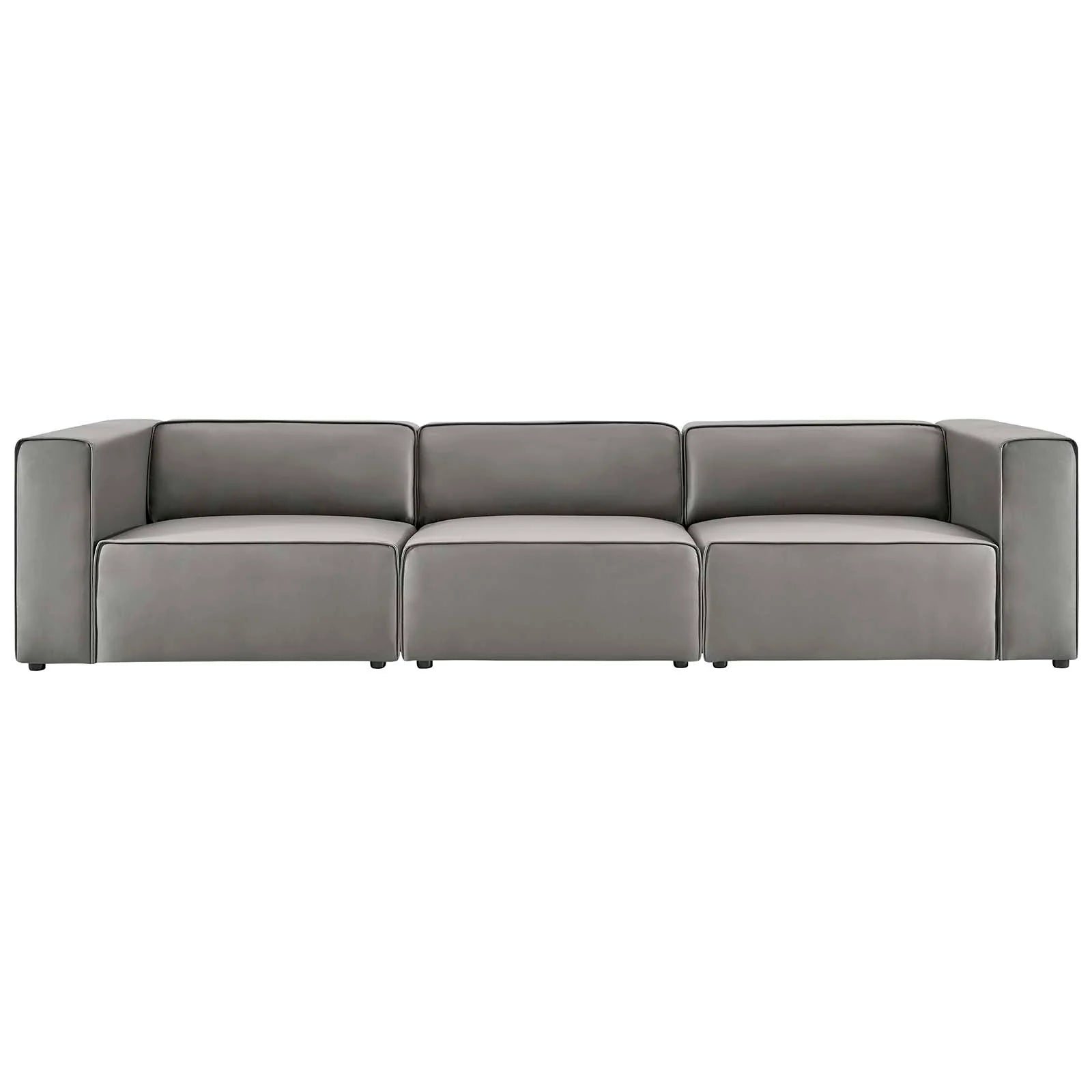 • Kick back and relax with the Mingle Vegan Leather 3-Piece Sectional Sofa. Designed to wash away the hindrances that obstruct visual space, this three-seater sofa comes expansively designed with generous seating and dense foam padding that allows for just the right amount of giving. Mingle easily positions according to the needs of the moment and features rich vegan leather upholstery with elegant piping and plastic legs for steady support. Host animated living or lounge room get-togethers with a modular sectional seating assortment perfect for contemporary modern décors.