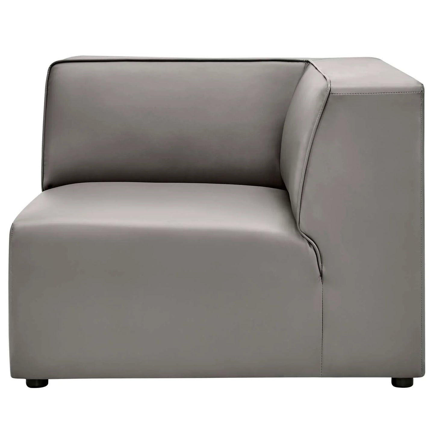 • Kick back and relax with the Mingle Vegan Leather Corner Chair. Designed to wash away the hindrances that obstruct visual space, Mingle comes expansively designed with generous seating and dense foam padding that allows for just the right amount of giving. Mingle easily positions according to the needs of the moment and features rich vegan leather upholstery with elegant piping and plastic legs for steady support. Host animated living or lounge room get-togethers with a modular sectional sofa seating assortment perfect for contemporary modern décors.