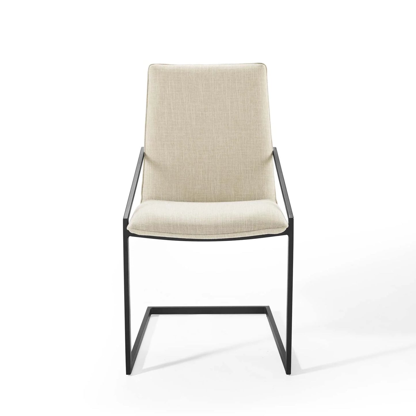 • Freely flowing angles form the understated elegance of the Pitch Performance Fabric Upholstered Dining Armchair. The Pitch Dining Chair has a matte black stainless steel frame, and a foam padded plywood seat. Covered in durable and soft upholstered fabric, the Pitch Accent Chair embraces open space for a notable modern chair that stands out amongst your dining room decor. Chair Weight Capacity: 330 lbs.