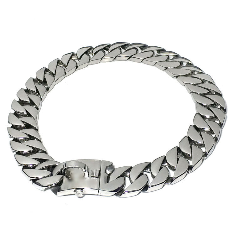 Level up your lovely dog's look with this premium-quality cuban chain dog collar. This looks stylish, made of rust-resistant materials so it won't irritate your dog's skin, and is durable enough to last for years. Your dog deserves to look good too!