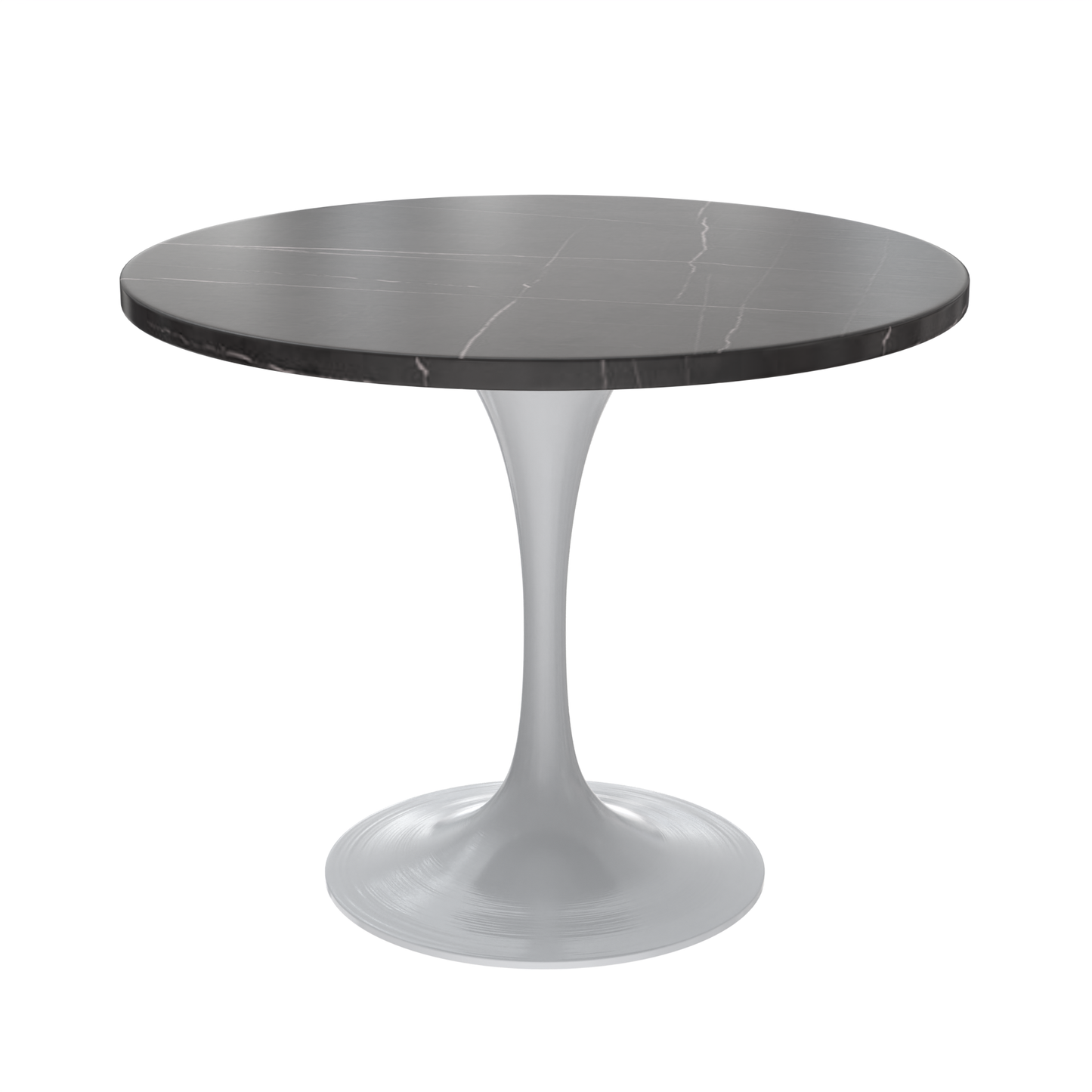 • The steel base is adorned with a powder-coated finish in a pristine white color. The powder coating enhances the base's resistance to scratches and corrosion, ensuring that your table retains its polished look for years to come