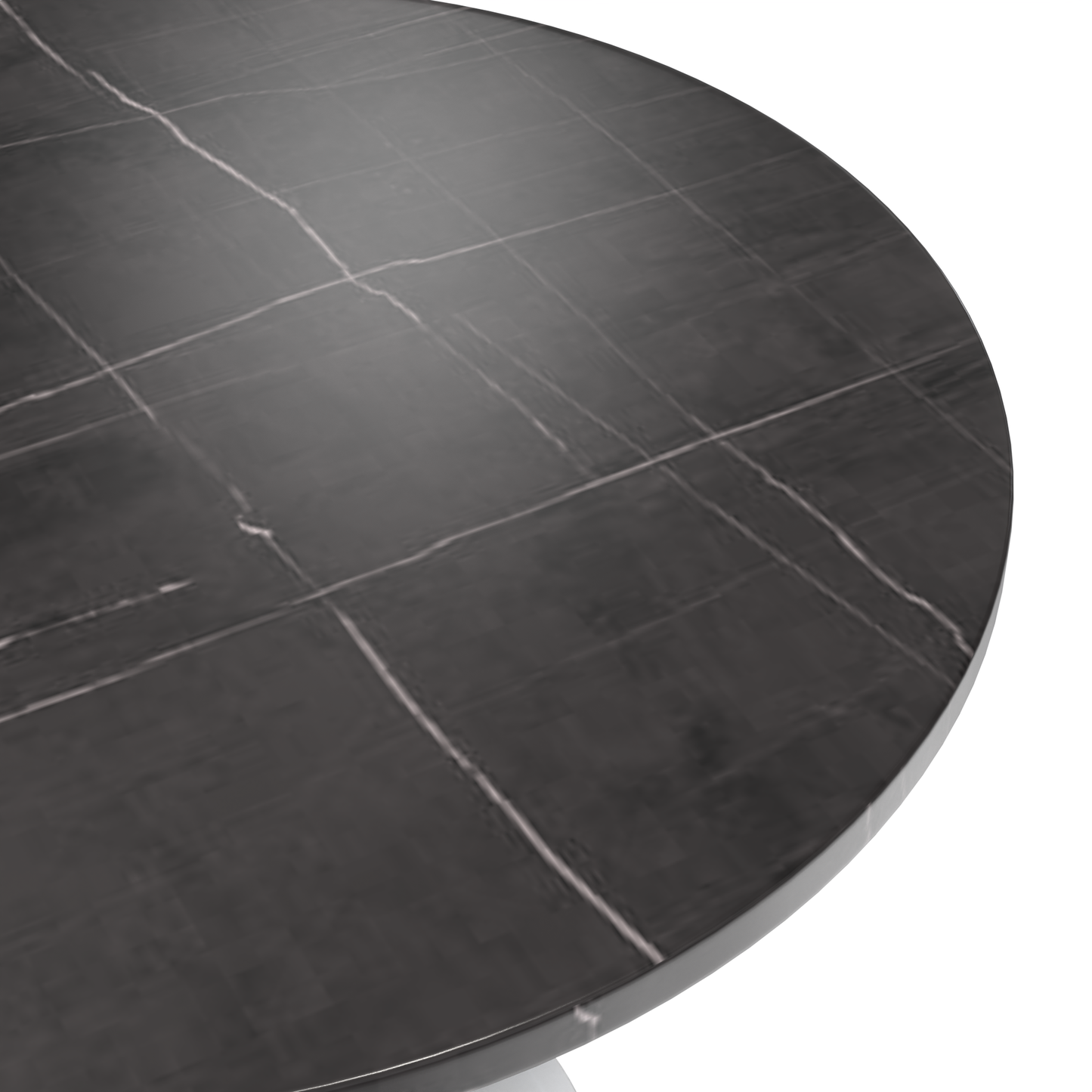 • The tabletop is crafted from sintered stone, a cutting-edge material known for its durability and sophisticated appearance. Sintered stone combines the best of style and functionality, offering resistance to stains