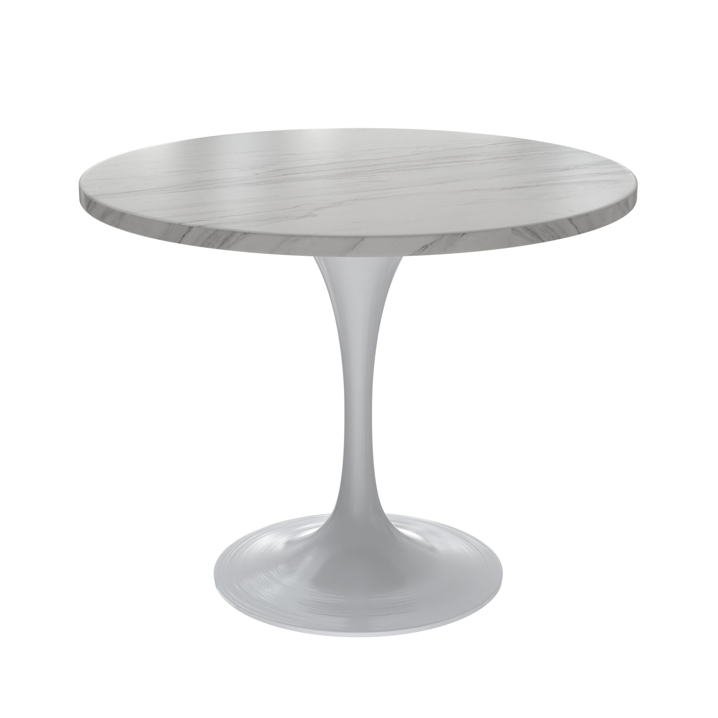 • Providing a sturdy foundation for the stylish tabletop is the white steel pedestal base. Steel is known for its durability, making it an ideal material for a piece of furniture that is meant to withstand the test of time