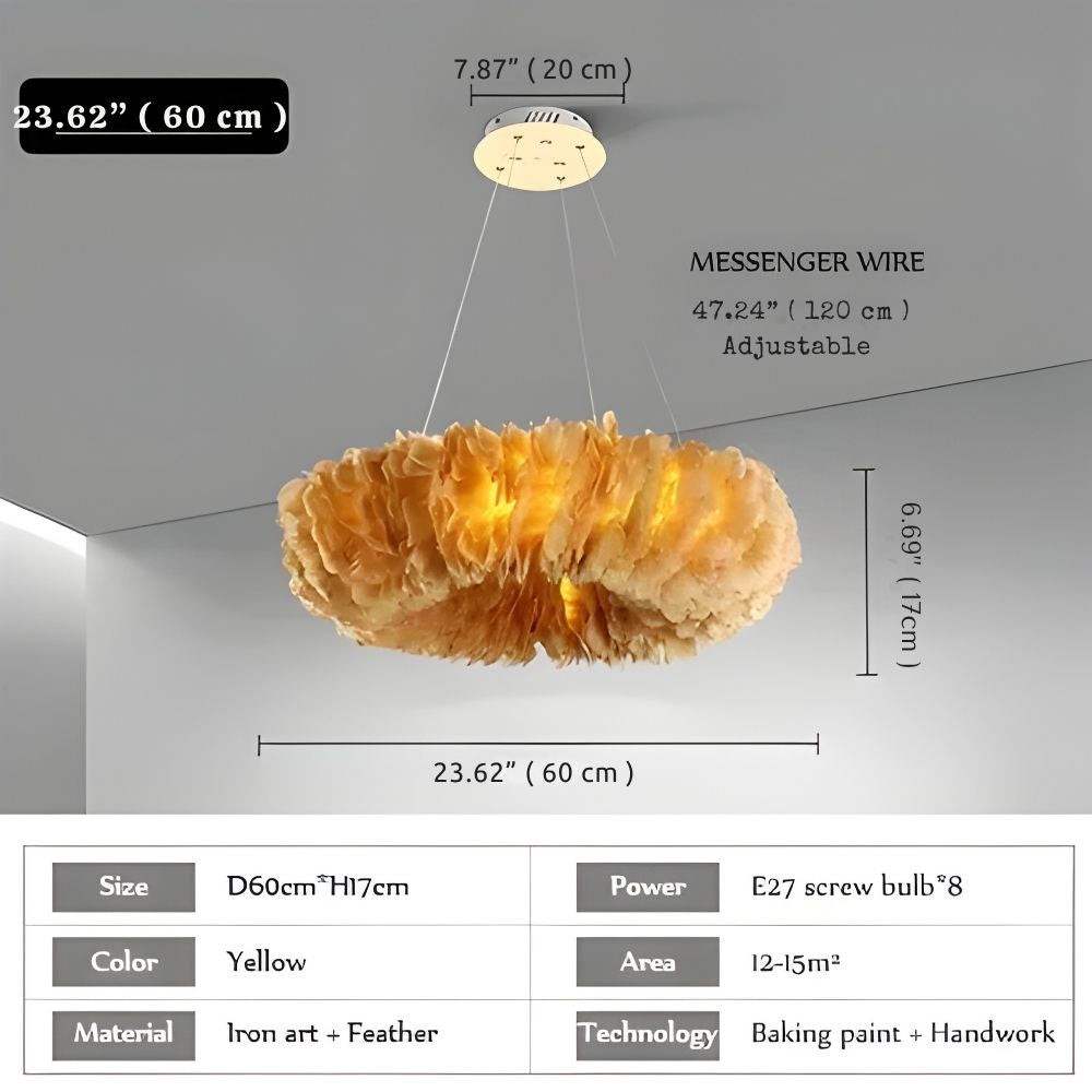 This is New Classic product in 2026. The Round Feather Chandelier adds a soft, whimsical glow to any room. Fluffy feather shades wrap the light in a gentle halo, making it a cozy choice for bedrooms, nurseries, teen rooms, and relaxed living spaces. Available in White, Pink, Gray, and Yellow, it easily matches everything from neutral interiors to playful color schemes. Pair it with other pieces from our Modern Chandeliers collections to finish the look. Highlights Feather drum shade for a soft, diffused glow that is easy on t