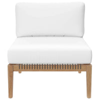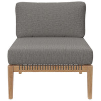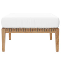 • Bask in warm weather as you lounge on the Clearwater Outdoor Patio Furniture Collection. Bringing contemporary aesthetics to a backyard, porch, patio, deck, or poolside, this outdoor sectional sofa features woven rope webbing underneath the foam padded cushions that grants breezy, coastal charm. Rest and relax amidst comfortable cushions with removable all-weather covers for easy cleaning. The base of this patio set is crafted with grade A premium teak wood that boasts a beautiful, rich wood grain and is naturally weather-resistant. Includes non-marking foot glides to protect flooring. Each Seat Weight Capacity: 498 lbs.