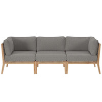 • Bask in warm weather as you lounge on the Clearwater Outdoor Patio Furniture Collection. Bringing contemporary aesthetics to a backyard, porch, patio, deck, or poolside, this outdoor sectional sofa features woven rope webbing underneath the foam padded cushions that grants breezy, coastal charm. Rest and relax amidst comfortable cushions with removable all-weather covers for easy cleaning. The base of this patio set is crafted with grade A premium teak wood that boasts a beautiful, rich wood grain and is naturally weather-resistant. Includes non-marking foot glides to protect flooring. Each Seat Weight Capacity: 498 lbs.