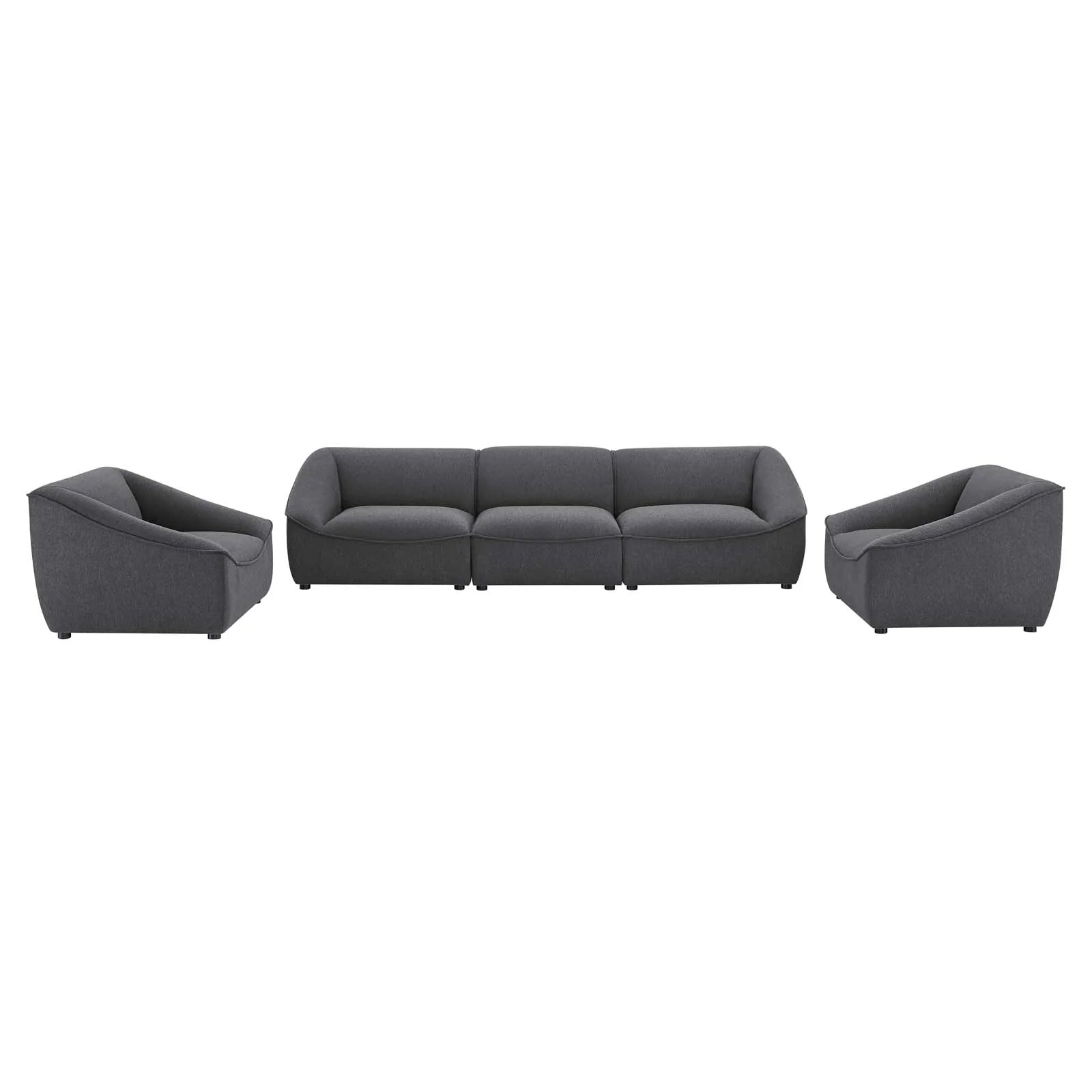 • Indulge in cozy relaxation in the comfort of your own home with the Comprise Upholstered 5-Piece Living Room Furniture Set. A casual design accented with French piping details, this living room set set features dense foam padding, soft polyester upholstery and a pocket coil spring system to offer a premium seating experience. Solidly constructed with solid wood and plywood, this furniture set rests atop sturdy rubberwood legs with secure connectors between modular pieces. Create a custom living room or lounge area with the Comprise Living Room Furniture Collection. Set Includes: 1 Left-Arm Chair, 1 Right-Arm Chair, 1 Armless Chair, 2 Armchairs