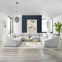 • Indulge in cozy relaxation in the comfort of your own home with the Comprise Upholstered 8-Piece Sectional Sofa. A casual design accented with French piping details, this sectional sofa features dense foam padding, soft polyester upholstery and a pocket coil spring system to offer a premium seating experience. Solidly constructed with solid wood and plywood, this upholstered sofa rests atop sturdy rubberwood legs with secure connectors between modular pieces. Create a custom living room or lounge area with the Comprise Living Room Furniture Collection. Set Includes: 1 Left-Arm Chair, 1 Right-Arm Chair, 2 Corner Chairs, 4 Armless Chairs