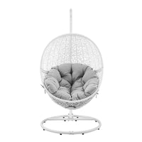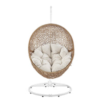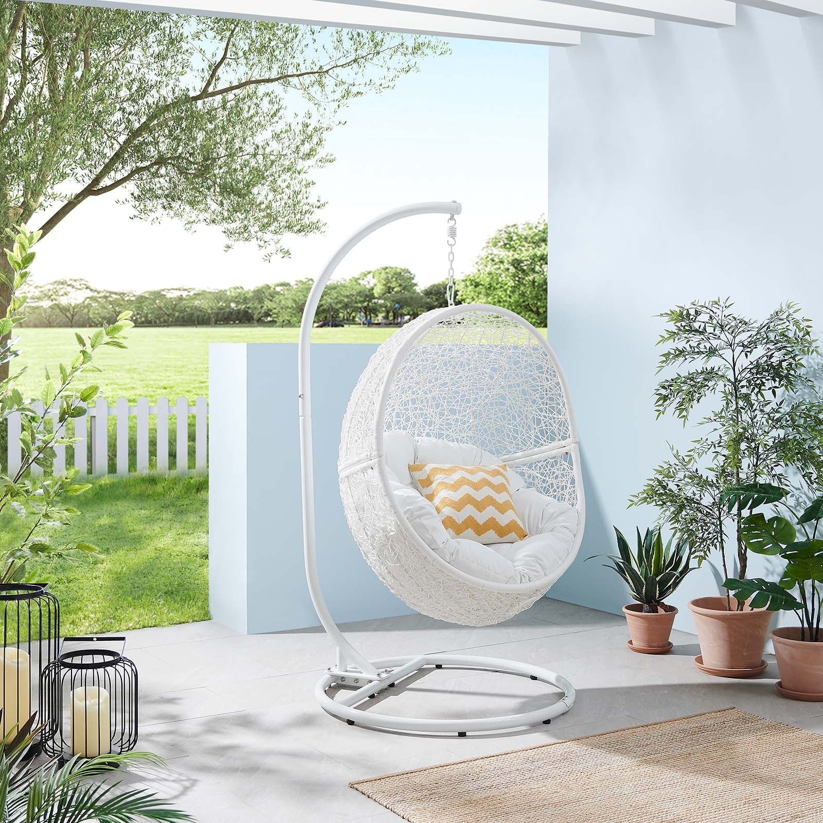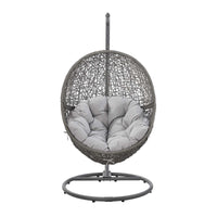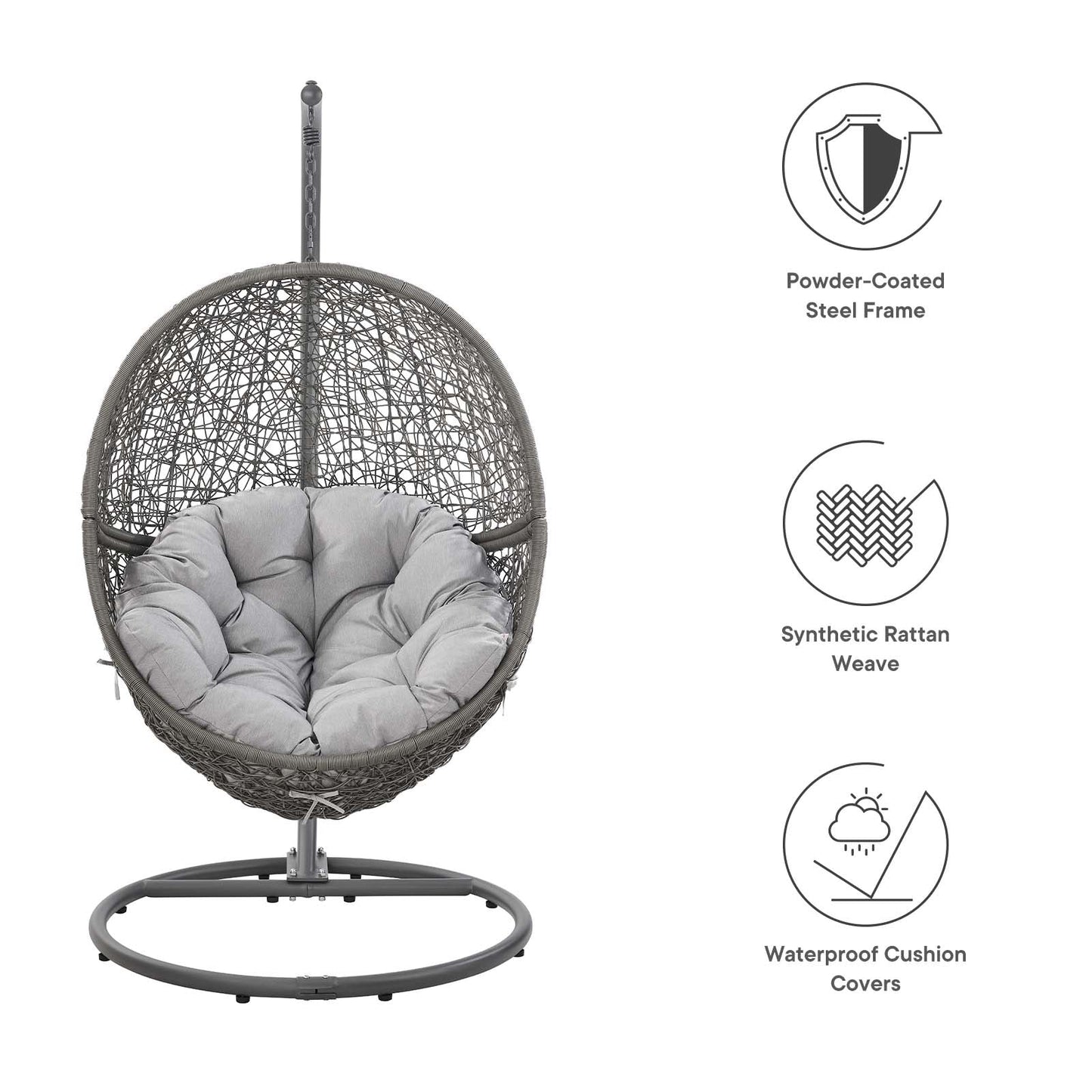 • Experience the allure of transformation and renewal with our exquisite Encase Outdoor Patio Swing Chair. A stylish and comfortable addition to your outdoor deck, porch, backyard, or poolside, this patio swing features a powder-coated steel frame with adjustable foot pads and a synthetic rattan weave that brings whimsical charm to its surroundings. The removable plush cushion with a waterproof cover makes it the perfect spot to relax amidst good weather. Assembly is required and easy-to-follow instructions are included. Weight Capacity: 330 lbs.