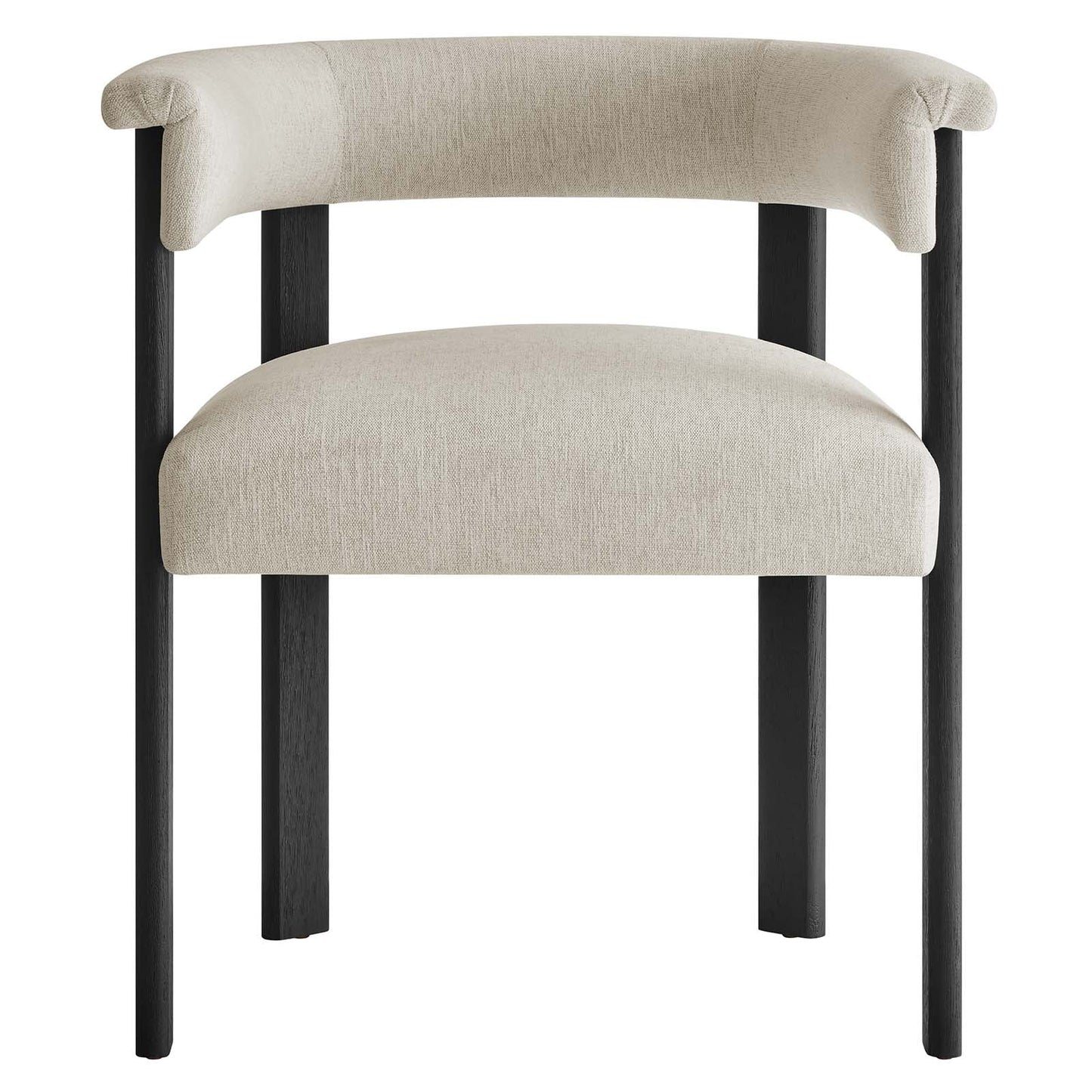 Feel the exquisite combination of modern chic and ultimate comfort with the Knox Fabric Dining Chair Set of 2. These contemporary dining chairs feature a unique barrel back silhouette that cradles you in luxury with its curved backrest and open design, offering both support and style. The foundation of each dining room armchair is built on sturdy wood legs, for durability and strength to accompany its aesthetic appeal. The seats and backrests, constructed from high-quality plywood, are enveloped in a dense layer of foam and fabric upholstery, creating an inviting look that beckons you to sit and relax well after you've finished eating. The fixed seat and cushion design provide a seamless, clean look that complements any dining table with grace. These curved back dining chairs are equipped with non-marking plastic foot pins, protecting your flooring. Perfectly suited as an accent chair or part of your kitchen & dining room ensemble, this set of two rounded back dining chairs seamlessly integrates with a variety of decor themes, from modern farmhouse to contemporary and minimalist aesthetics. Easy to assemble and designed with the modern home in mind, the Knox barrel chair set is not only a practical addition to your home but also a reflection of sophisticated taste. Dining Side Chair Weight Capacity: 331lbs