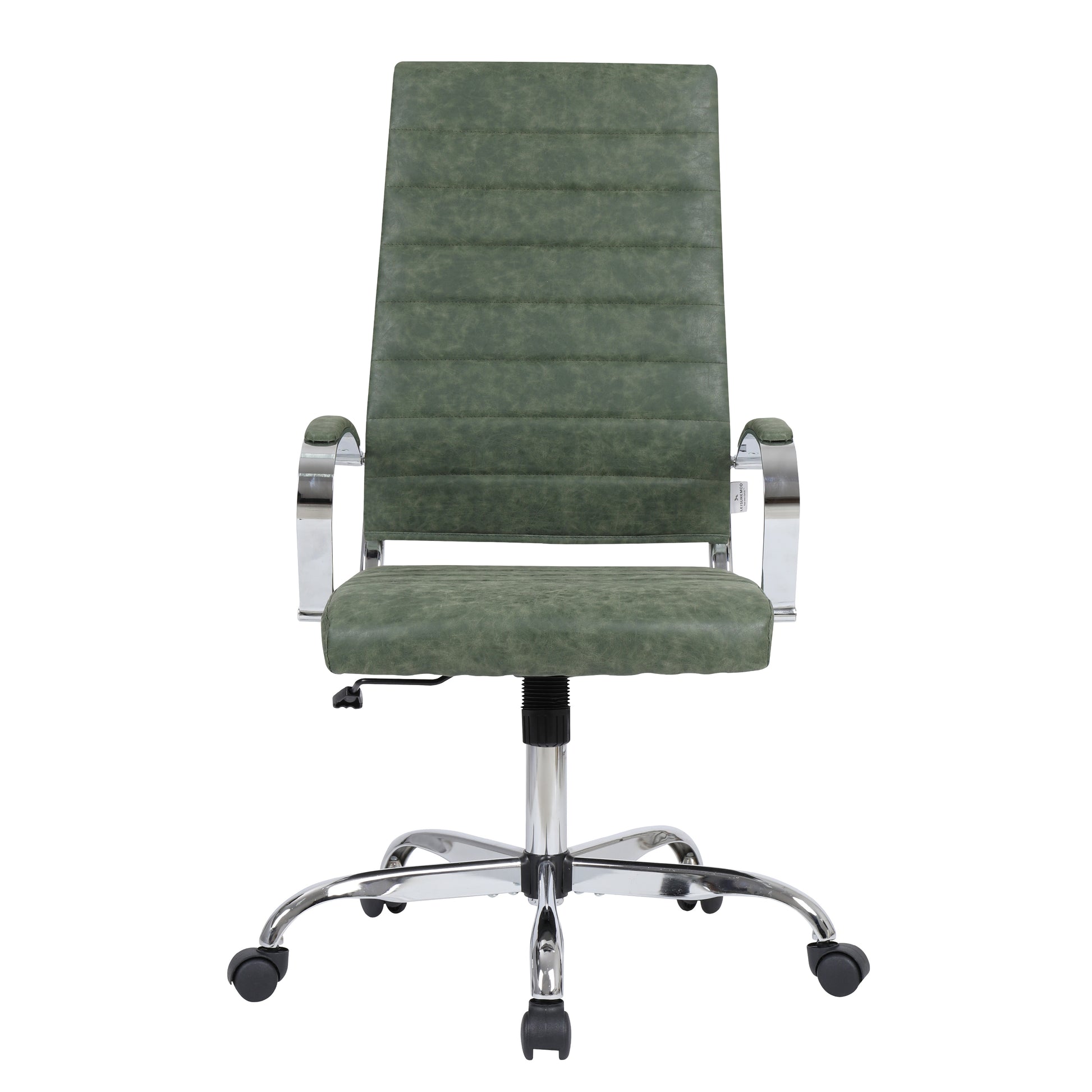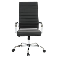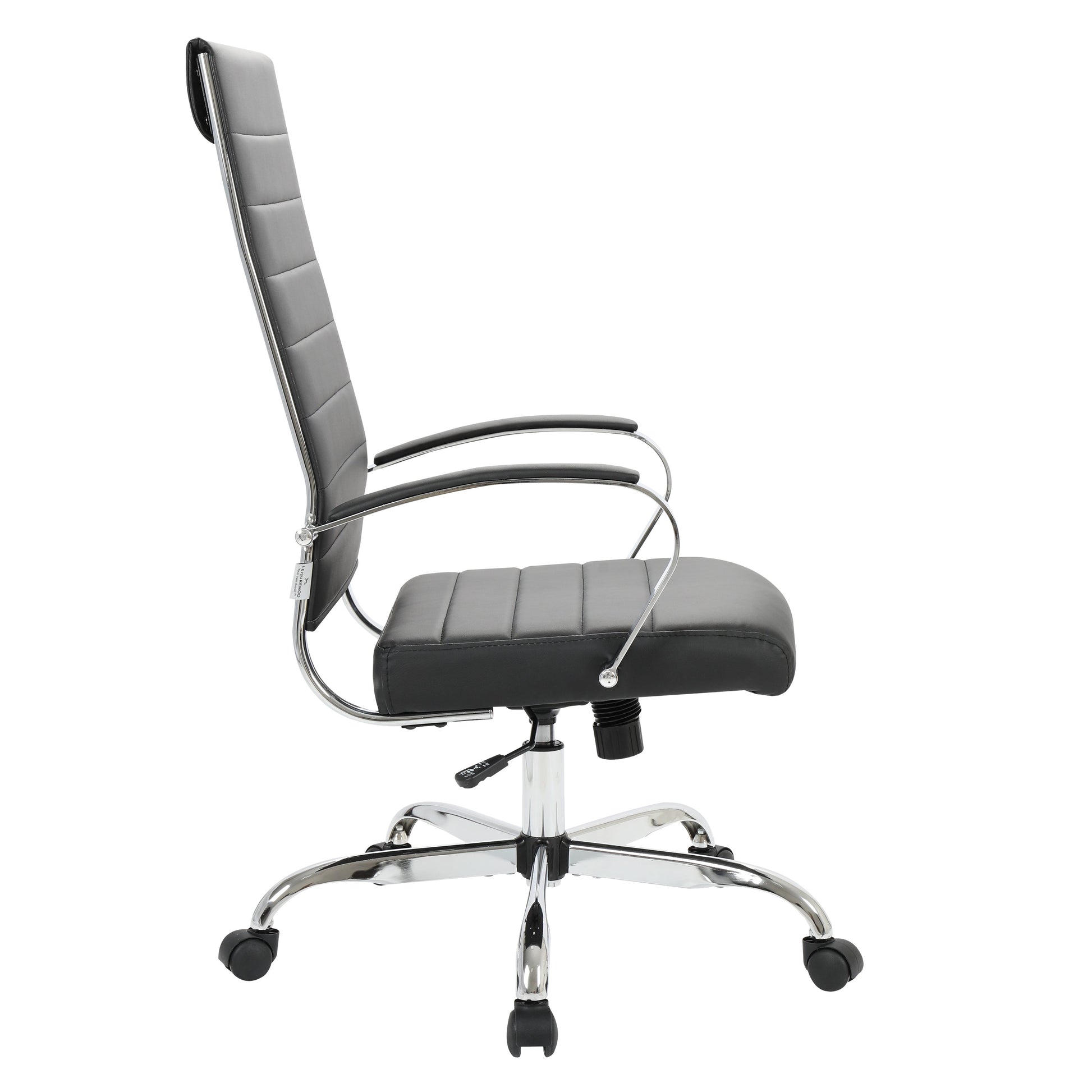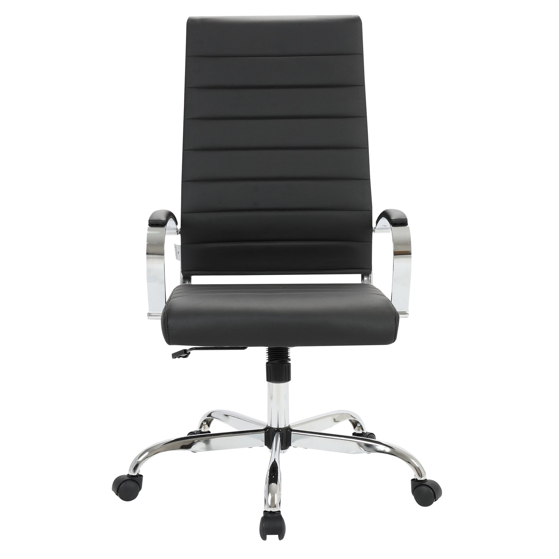 Embrace full luxury with this exceptional Benmar office chair built to provide optimal comfort and a sophisticated aesthetic. Make a statement with an adjustable mid-century style chair that completes the contemporary office space. Inspired by a classic mid-century design, this version shows off a bold and sophisticated presence. High back office chairs have backs extending to the upper back for greater support. With a pneumatic gas lift to adjust the seat height and 360-degree swivel, this chair delivers the versatility and functionality required by the modern working environment. A tension knob and tilt locking lever complement a catered five-point base for easy mobility.