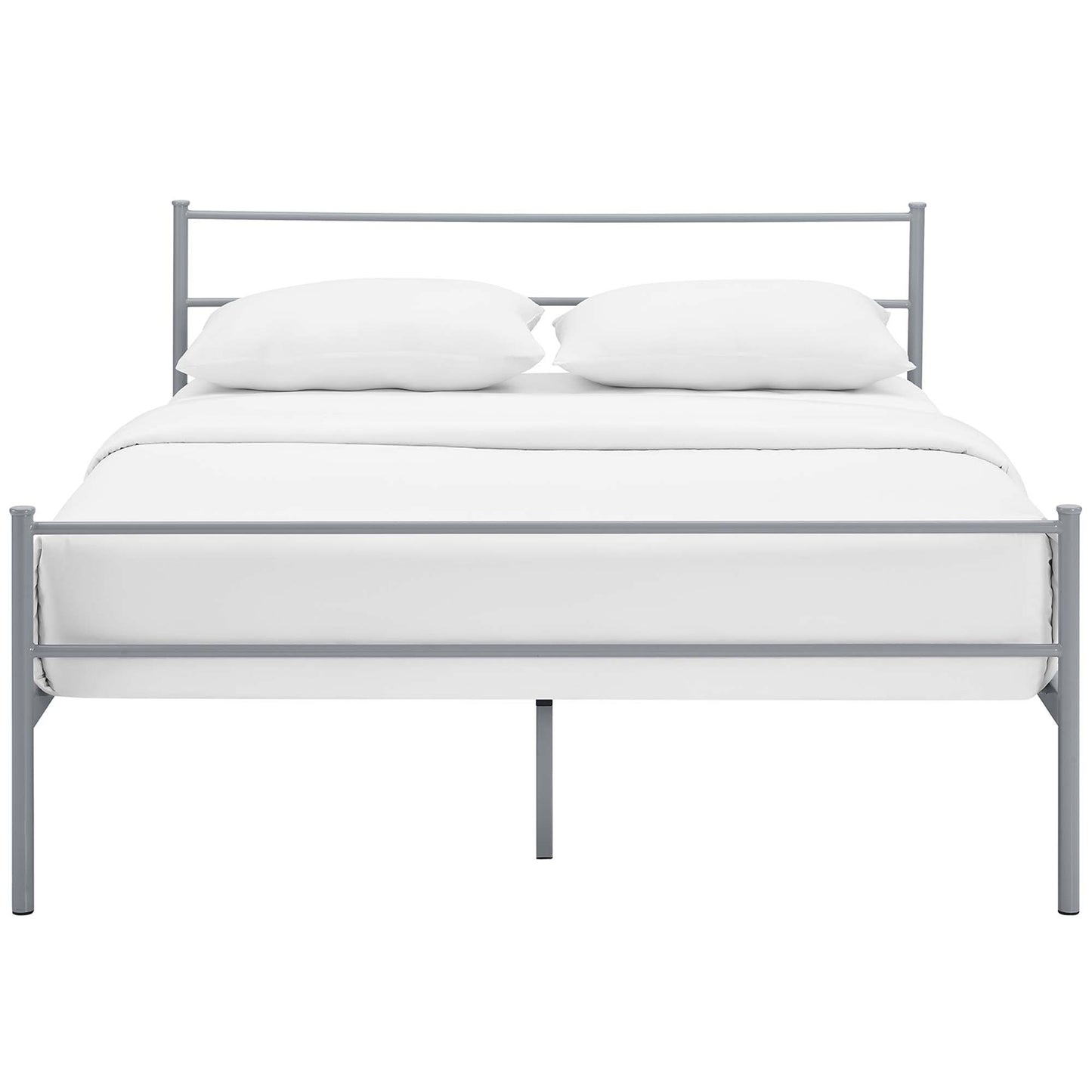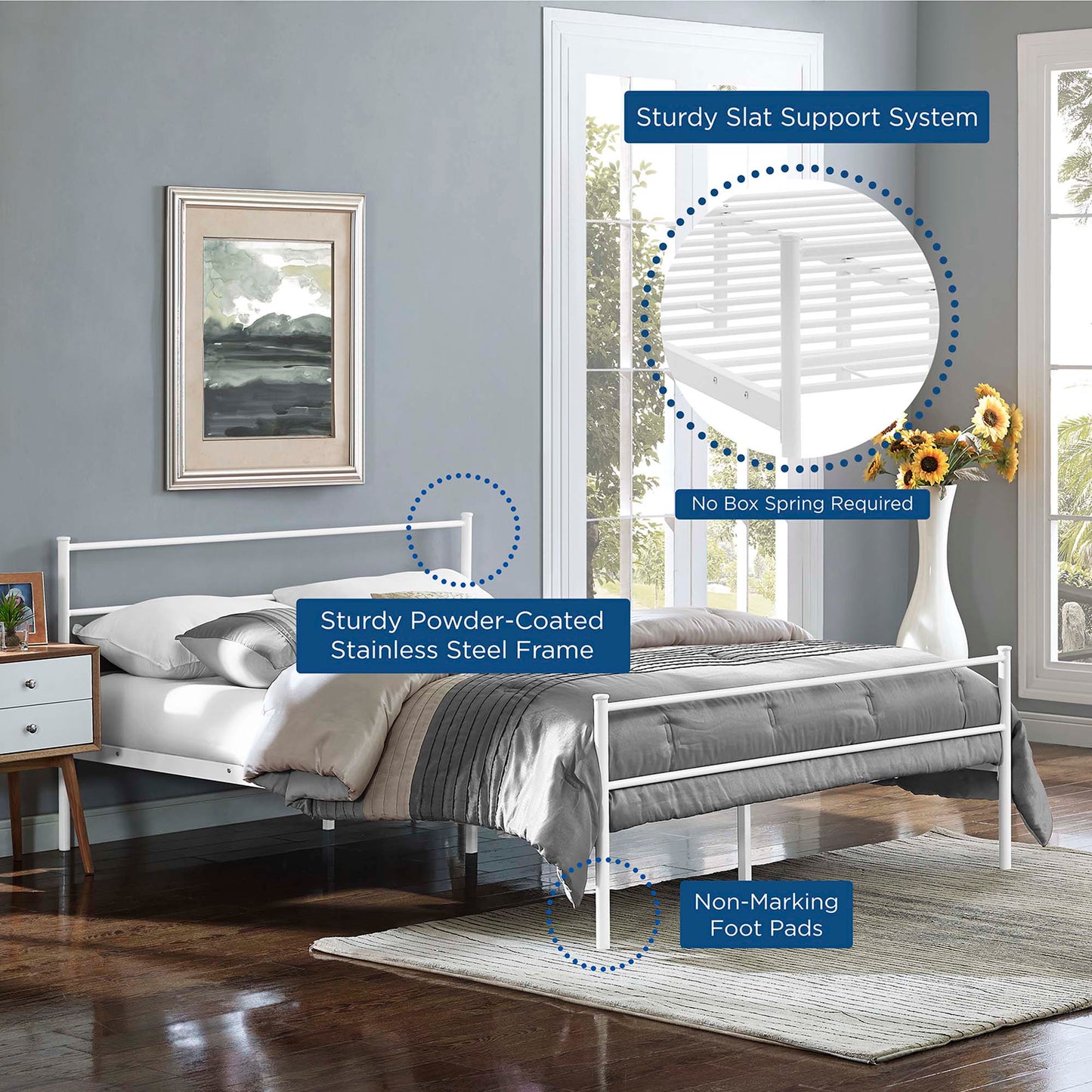 Draw a parallel between modern decor and the harvested elegance of rustic lines with Alina Platform Full Bed. Solidly built with a reinforced center beam and vintage styled steel frame, Alina can comfortably support up to 1323 lbs. Alina creates a tranquil look indicative of cottage decor and country homes, eliminates the need for a box spring and supports mattress types such as memory foam, spring, latex and hybrid. Mattress not included.