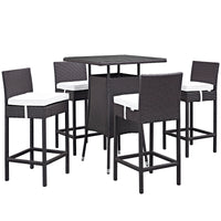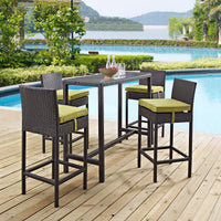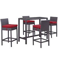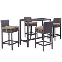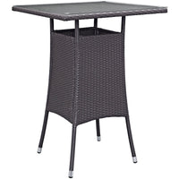 Gather stages of sensitivity with the Convene Outdoor Sectional series. Made with a synthetic rattan weave and a powder-coated aluminum frame, Convene is a versatile outdoor collection that shifts and combines according to the spontaneous needs of the moment. Outfitted with all-weather fabric cushions, leave a positive impression on friends and family while enhancing your patio, backyard, or poolside repast in this series of palpable distinction. This installment of the series is an Outdoor Patio Pub Set.