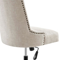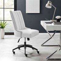 Inspire productivity in the workplace with the Empower Channel Tufted Fabric Office Chair. Nailhead trim and channel tufting bring retro modern style to this office chair while dense foam padding and soft polyester fabric upholstery offer exceptional comfort and support during the workday. A matte black metal base and five single ball casters provide easy movement over hardwood or carpeted surfaces while a full 360º swivel, tilt tension control, and pneumatic height adjustment allow for personalized customization. Designed for the modern home or office, this upholstered desk chair is a stylish and functional addition to any workspace. Chair Weight Capacity: 287 lbs.