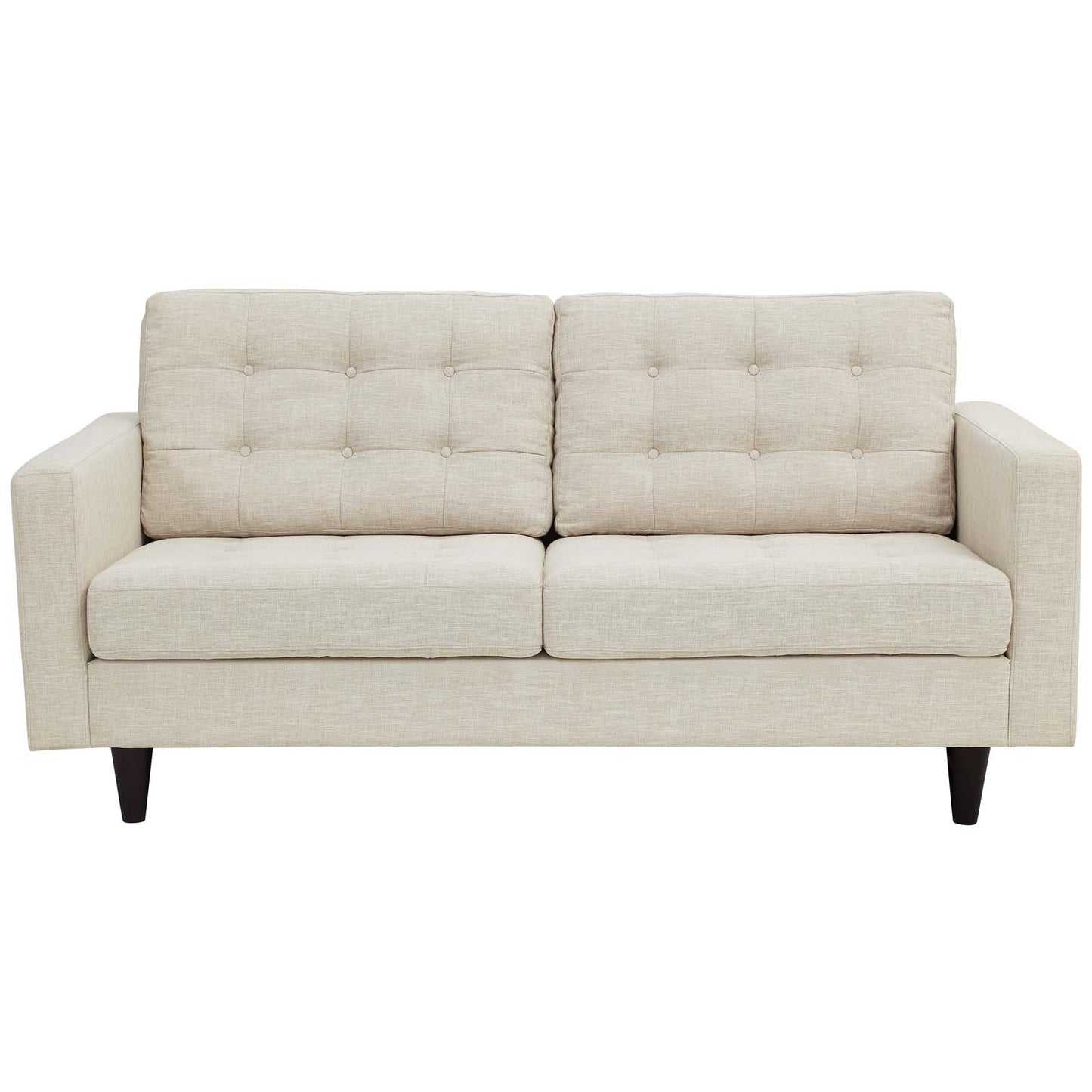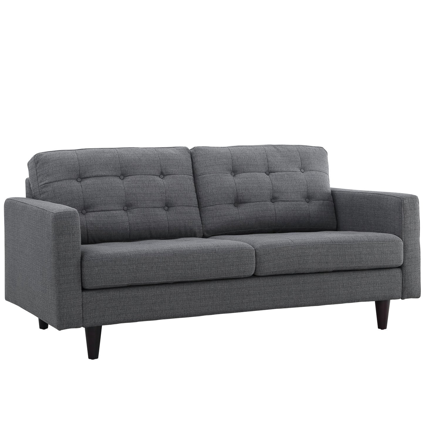 End the rule of unjust sovereignties that wage a useless war for your interiors. Empress leaves the would-be heiress of holistic furnishings in the dust with a design that rivals any competitor. Empress is heralded with deeply tufted buttons, plush cushions, and armrests that convey that perfect air of nobility. The solid wood legs come with plastic glides to prevent floor scratching, and the fine fabric upholstery leaves the recipients feeling richly rewarded.