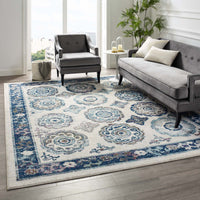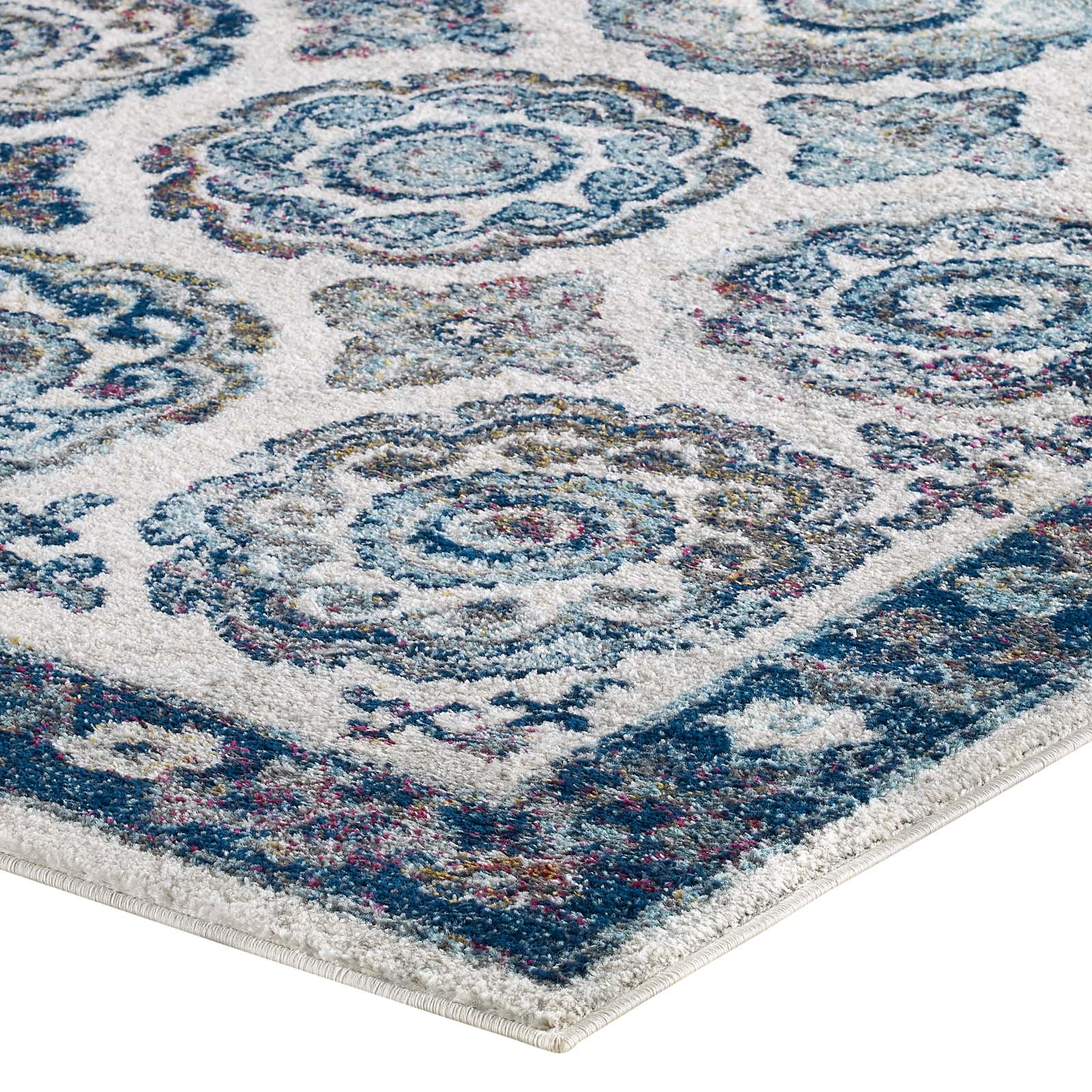 Make a sophisticated statement with the Odile Distressed Vintage Floral Moroccan Trellis Area Rug from the Entourage Collection. Patterned with an elegant floral medallion design, Odile is a durable machine-woven frise polypropylene rug. Complete with a gripping rubber bottom, Odile enhances traditional and contemporary modern decors while outlasting everyday use. Featuring a distressed Moroccan trellis design with a low pile weave, the area rug is a perfect addition to the living room, bedroom, entryway, kitchen, dining room or family room. Odile is a family-friendly stain resistant rug with easy maintenance. Vacuum regularly and spot clean with diluted soap or detergent as needed. Create a comfortable play area for kids and pets while protecting your floor from spills and heavy furniture with this carefree decor update for high traffic areas of your home.