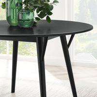 Enjoy dinner with friends or daily mealtimes with the 47" Gallant Dining Table. With a simple round shape, this dining table rests atop splayed and tapered legs crafted from solid rubberwood with angular supports for added interest. This kitchen table is complete with a smooth, durable MDF tabletop and a wood veneer finish that is easy to clean and maintain. A striking addition to the modern home, Gallant emboldens decor in the dining room or kitchen. Assembly required.