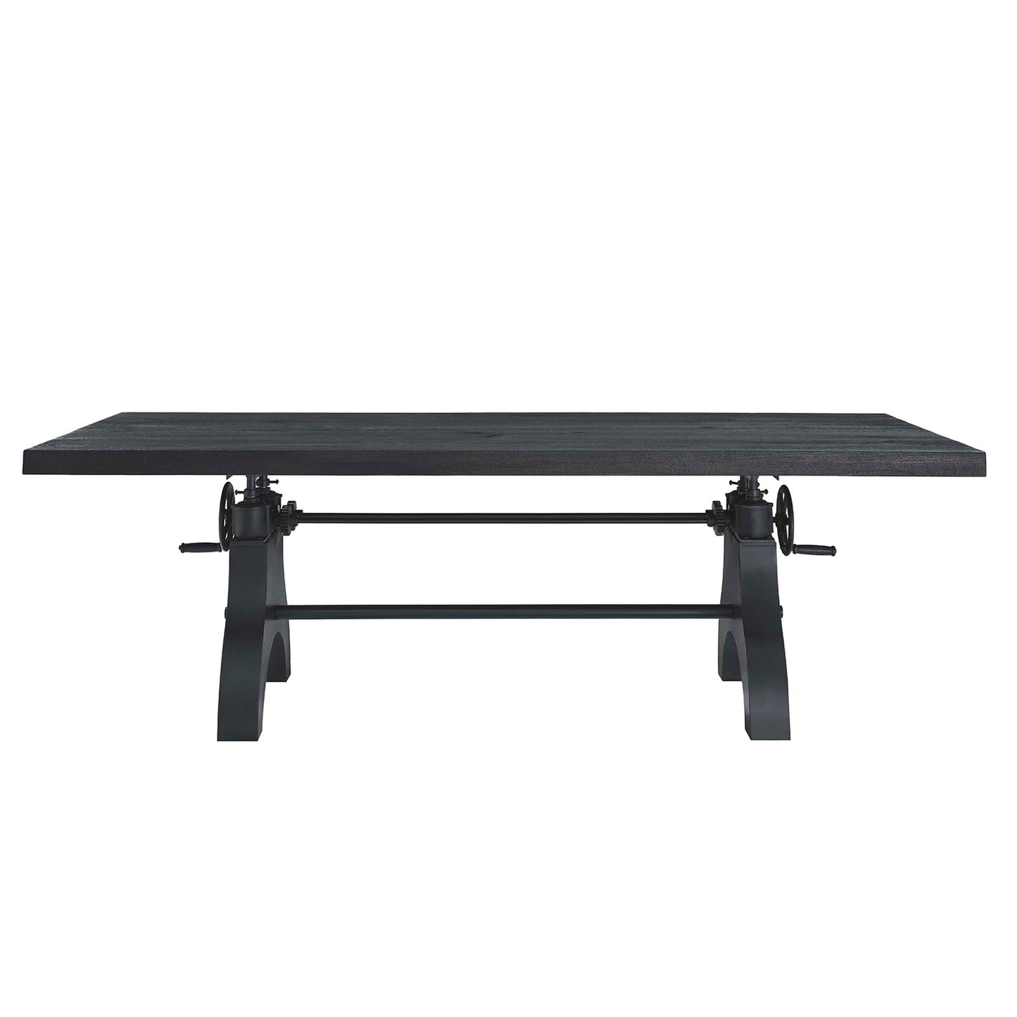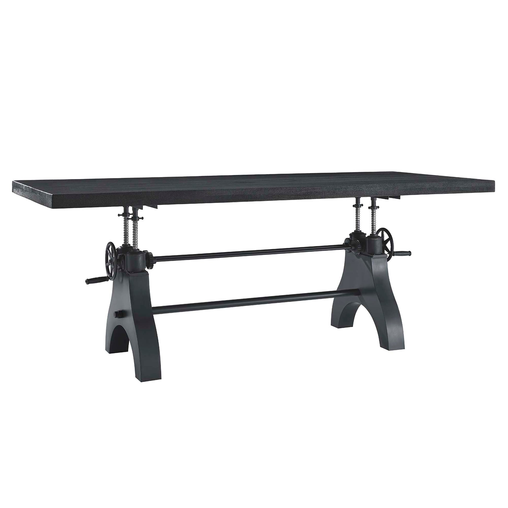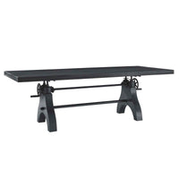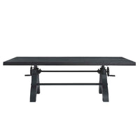 Elevate your workspace or dining area with the innovative Genuine 96" Crank Adjustable Height Table. This versatile piece is a game-changer, offering a range of heights from 29" to 40.25" to suit your preferences. Whether used as a conference table, counter-height table, or bar-height table, this unique piece is the perfect blend of functionality and style. Its sturdy iron-plated metal wishbone leg base boasts an eye-catching crank mechanism for effortless height adjustment. With rustic vintage charm and industrial modernity, this dining table is crafted from solid wood with a beautiful wood grain that adds character and sophistication to a dining room, conference room, kitchen area, or other living space. This 96" rectangular table comfortably seats eight to ten bar or counter-height chairs and offers a spacious desktop for meetings and conferences. Includes non-marking foot glides to protect flooring. Minimal assembly required.