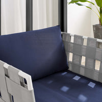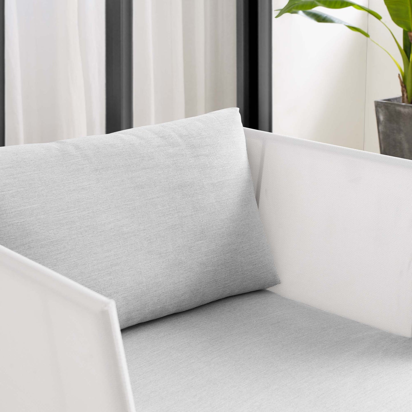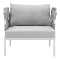 Engage life with Harmony Outdoor Patio Armchair. Enjoy casual conversation under the open sky with an all-weather waterproof outdoor chair from a versatile furniture set that delivers an exceptional outdoor porch, patio, balcony or garden experience. An exceptional modern outdoor furniture set that exceeds expectations, Harmony Patio Armchair comes with soft and durable polyester Textiline® panels, square powder coated aluminum bases, Sunbrella® cushions, and non-marking foot caps. An outside chair that arranges according to the spontaneous needs of your guests, set your sights on open and inspired moments with the Harmony Outdoor Patio Collection.