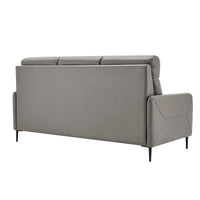 Bring luxe comfort and rich style to your living room, bedroom sitting area, or office with the Huxley Leather Sofa. With a high back design perfect for long lasting support, this leather sofa abounds in modern charm and practical functionality. Upholstered in comfortable quality leather, this living room sofa is complete with dense foam padding and a no-sag spring support system. The frame of this leather sofa is crafted with solid wood, and it rests on black powder-coated steel legs with non-marking foot pins. Weight Capacity: 900 lbs.