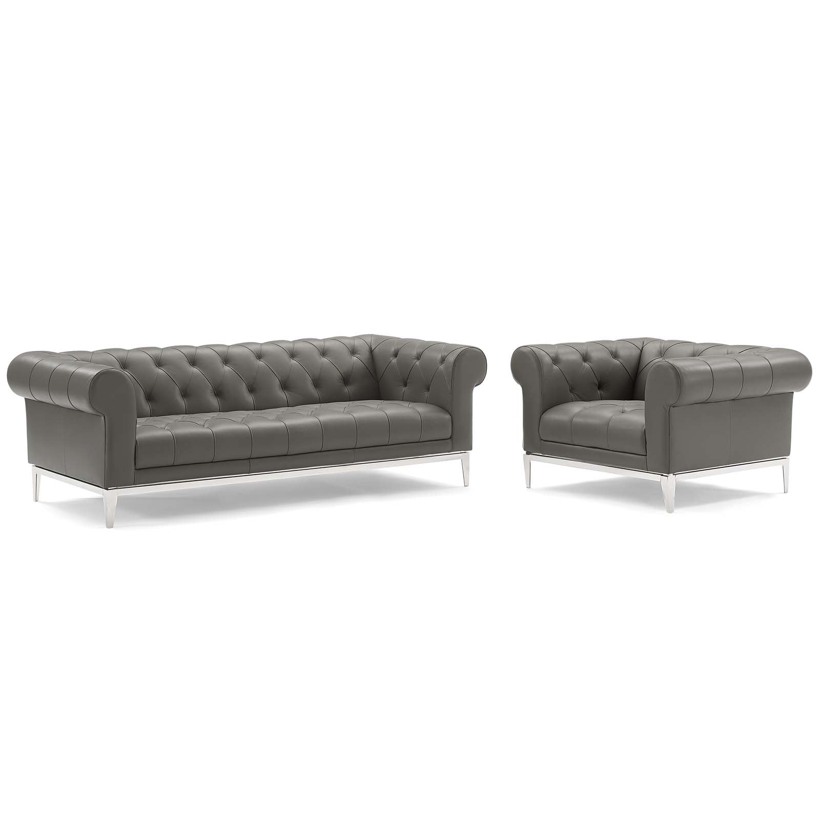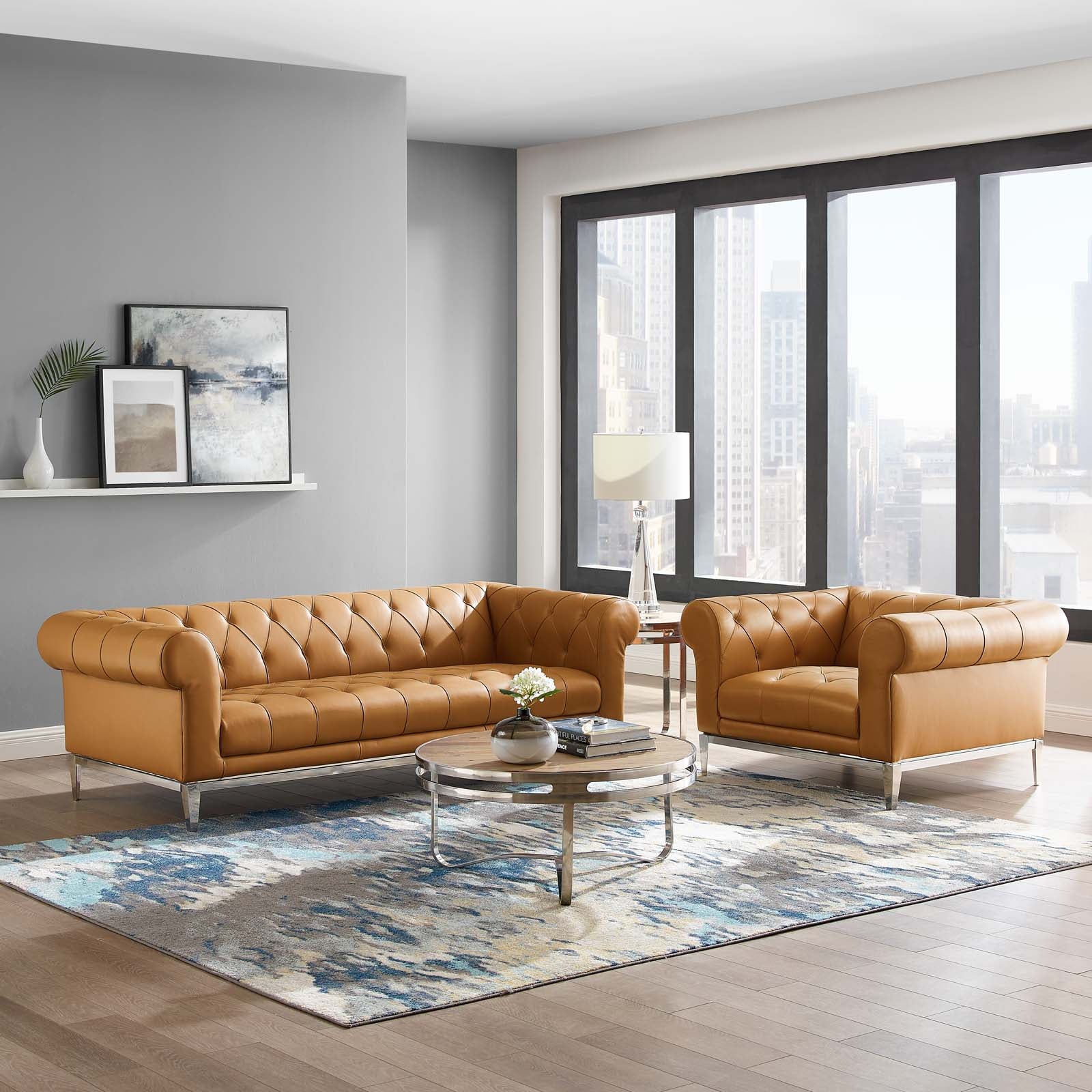 Idyll Tufted Upholstered Leather Sofa and Armchair Set
