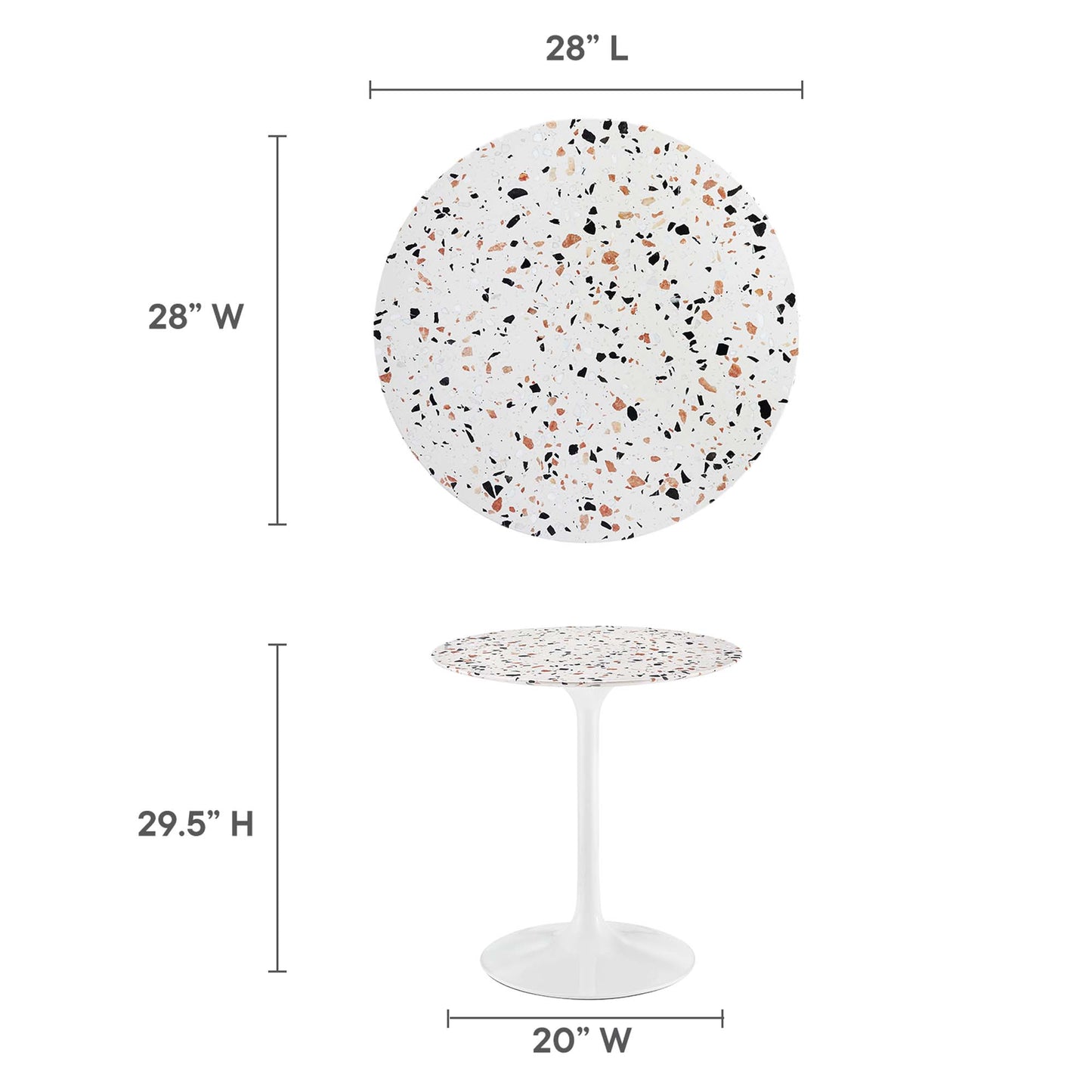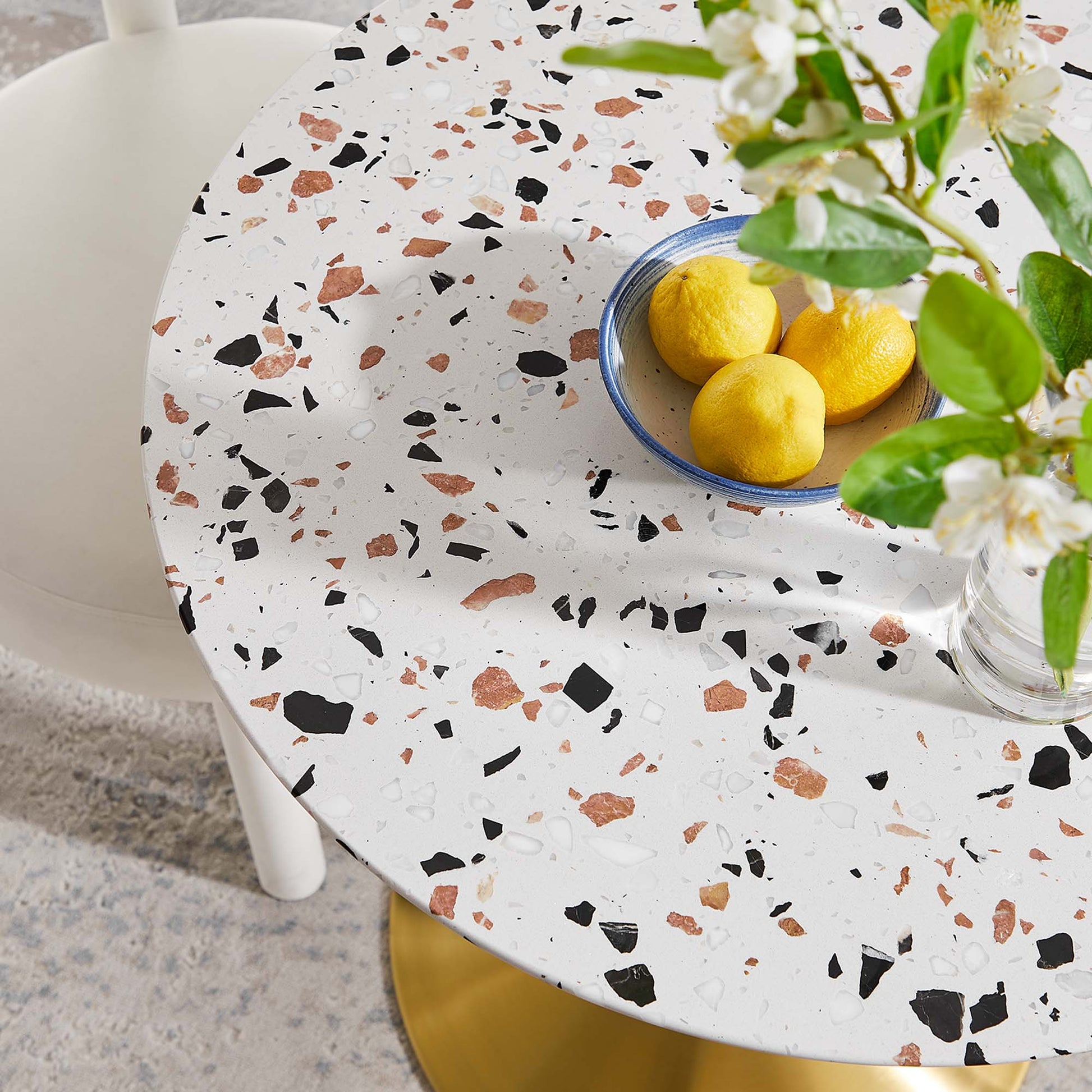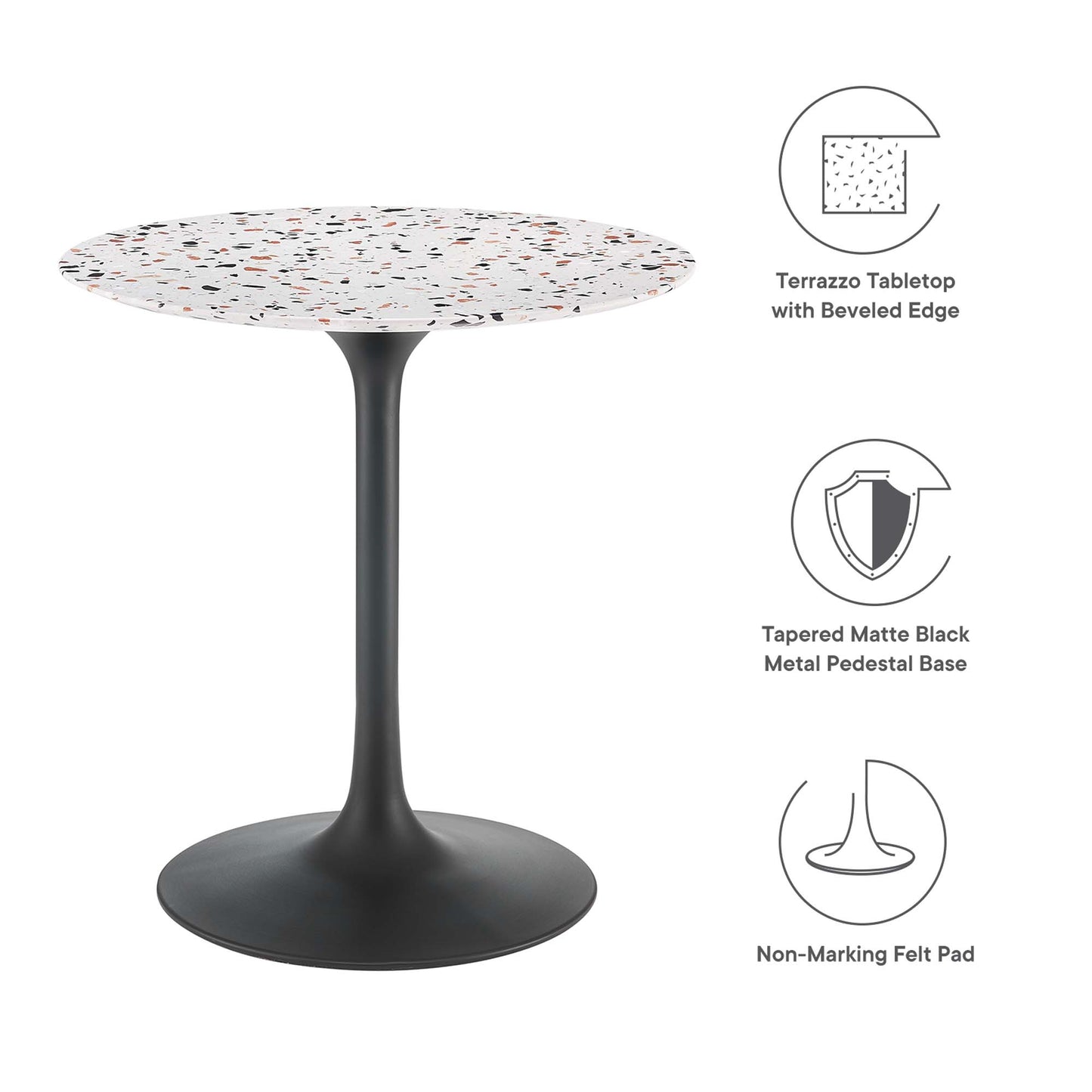 Let modern inspiration flow while gathered around the Lippa 28" Round Terrazzo Dining Table. Perfect for entertaining family and friends or everyday dining, this pedestal table comfortably seats two. Its round tabletop features a terrazzo construction and beveled edge for a contemporary yet timeless design. Embodying an iconic mid-century silhouette, this pedestal dining table floats on a sleek tapered metal pedestal base with a chip-resistant finish. Includes non-marking felt pad to protect flooring. Assembly required.