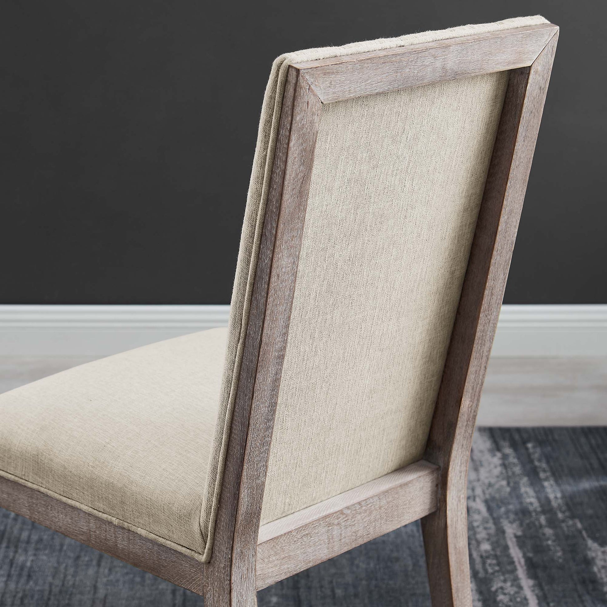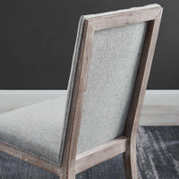 Revel in vintage charm and modern comfort on the Maisonette Fabric Dining Side Chair. Featuring vertical channel tufting along the backrest and subtle piped trim along the frame, this dining chair is a pleasing blend of old world French style and rustic aesthetics that pair beautifully in vintage or modern farmhouse decors. Upholstered in a versatile polyester linen textured fabric, this dining chair grants a premium seating experience with dense foam padding. This dining chair rests atop non-marking foot pins and is crafted with sturdy rubberwood with a weathered finish. Weight Capacity: 331 lbs.