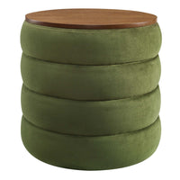Elevate your home’s aesthetic and utility with the Mezzo Performance Velvet Storage Ottoman Stool. Densely padded and wrapped in stain-resistant performance velvet, this channel tufted storage ottoman combines practicality with a touch of luxury. This footstool with storage features a round, wood grain veneer lid, opening to a spacious compartment ideal for linens, games, and other household items. This round storage ottoman is versatile, doubling as a side table or a plush footrest. Non-marking foot glides protect your flooring, making it a perfect ottoman with storage in the living room or a stylish storage stool at a vanity. Delivered fully assembled, this velvet ottoman offers immediate enjoyment and convenience. Weight Capacity: 264 lbs.