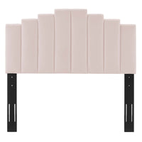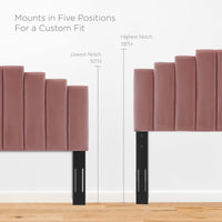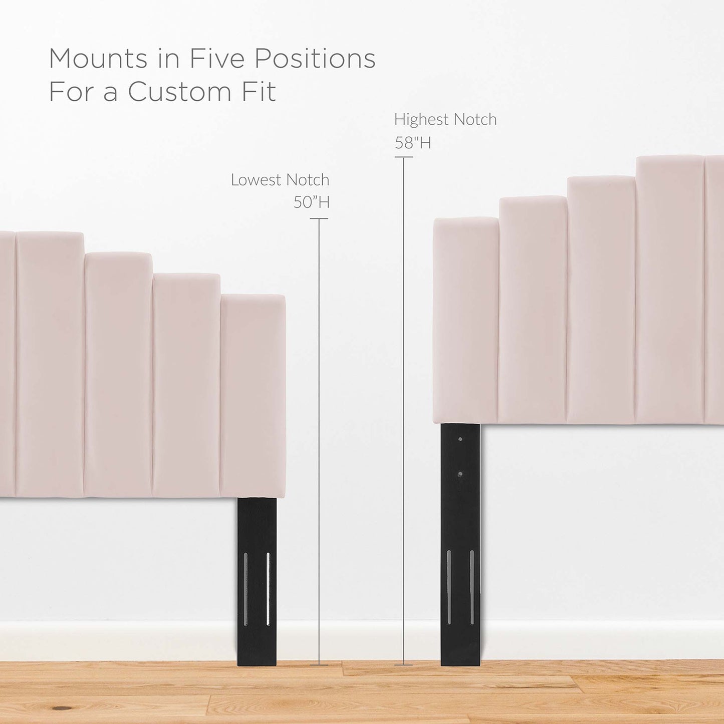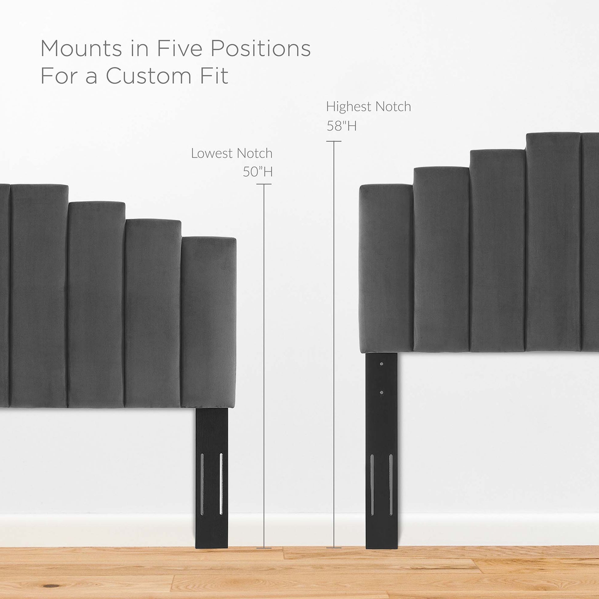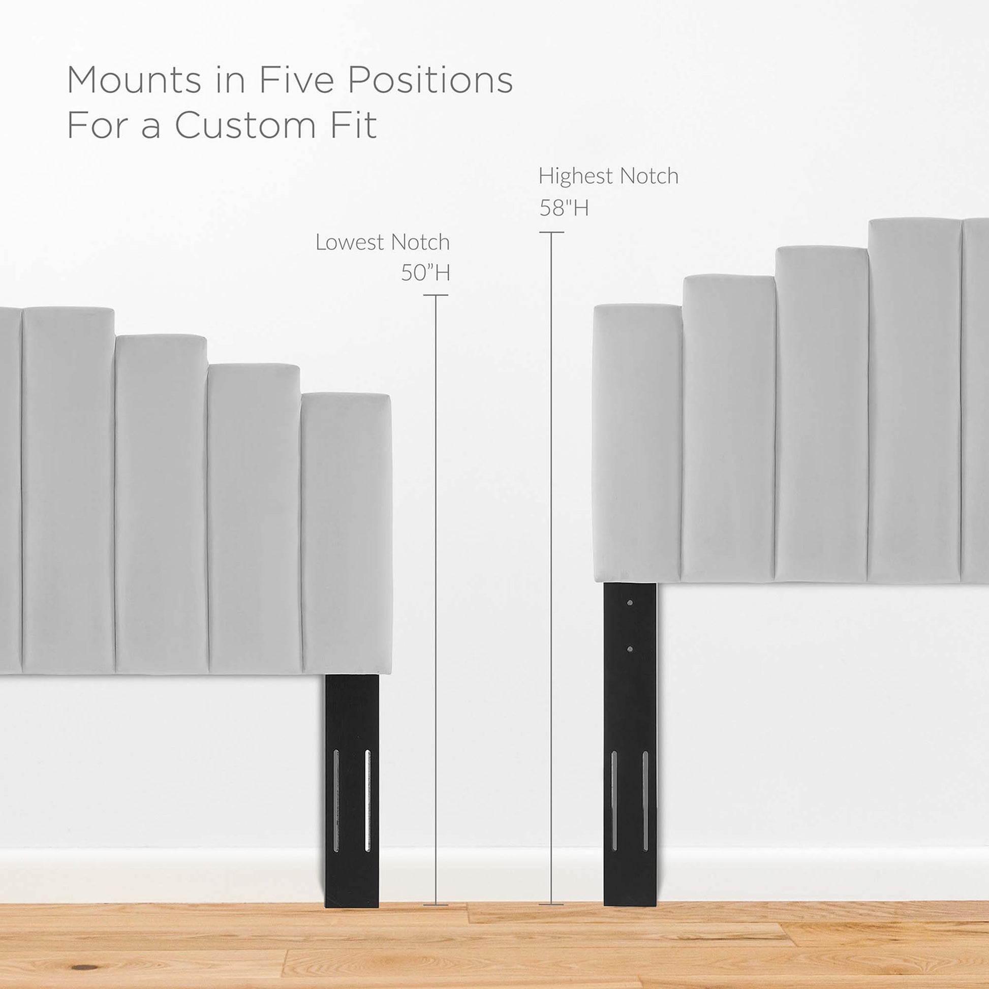 Refresh your master bedroom or guest suite with the luxurious style of the Noelle Performance Velvet Full/Queen Headboard. Abounding in glam deco style, this full or queen headboard features a modern twist on classic channel tufting with velvety panels ascending upwards in an arching design. This queen/full headboard comes upholstered in soft, stain-resistant performance velvet upholstery that grants rich texture to the elegant form. With a sturdy construction and adjustable height, this headboard for full or queen beds is densely padded with foam to create a comfortable spot to sit back and relax while reading, lounging, or watching TV in bed.