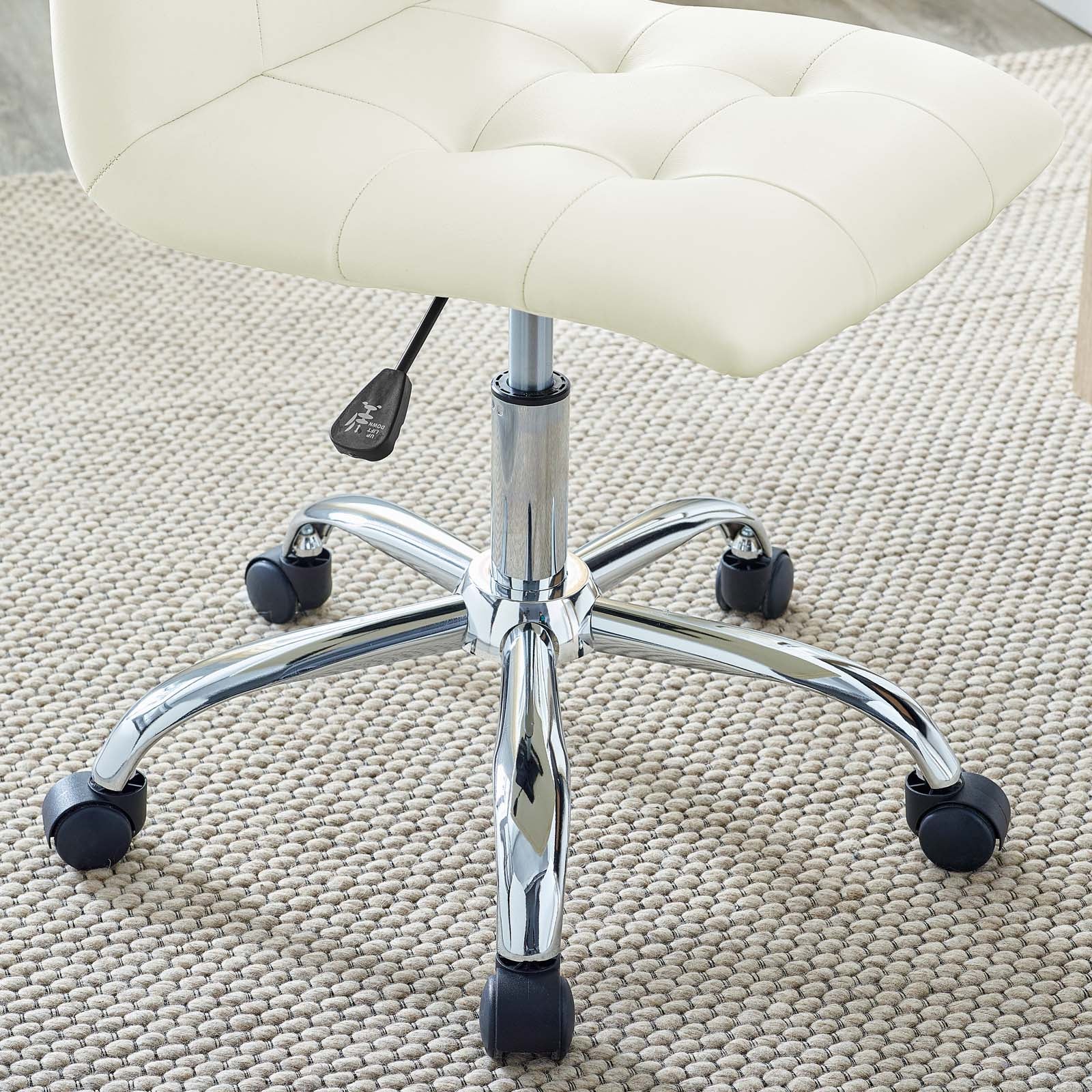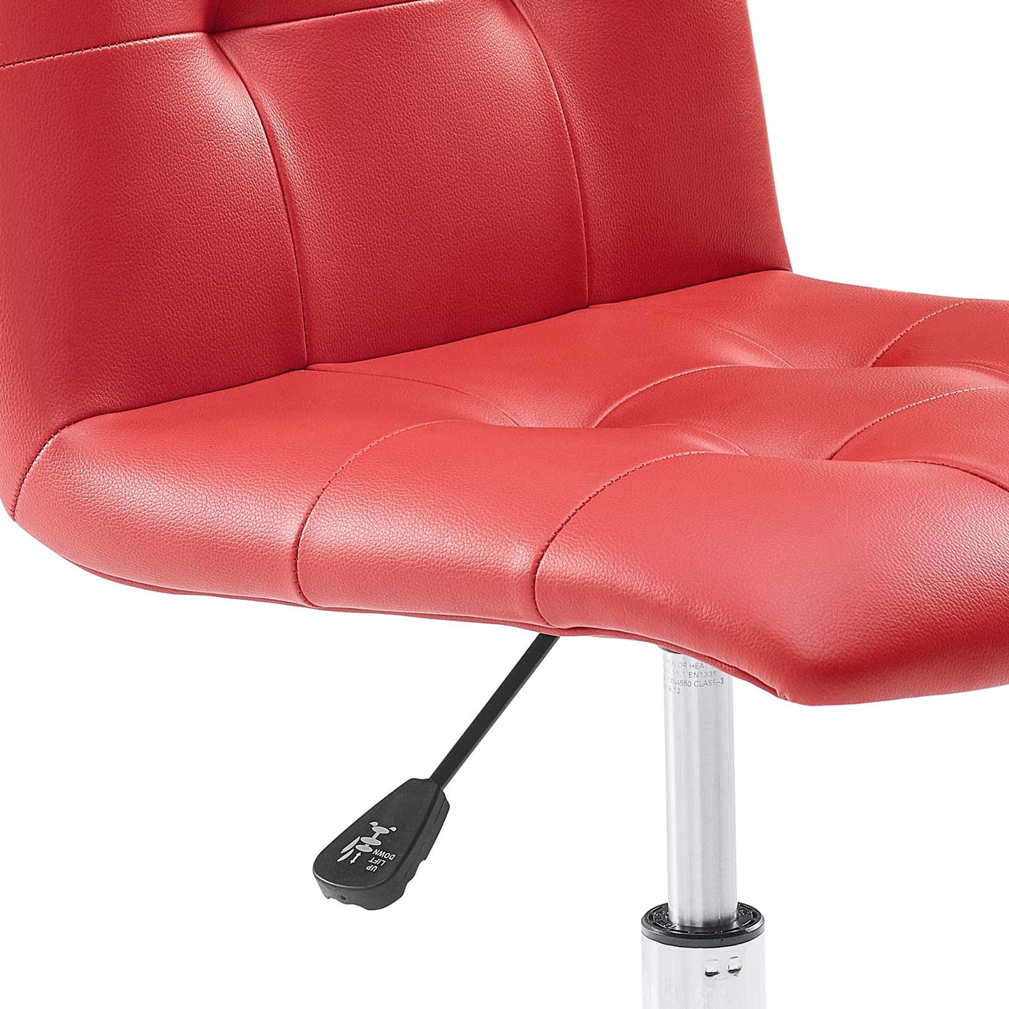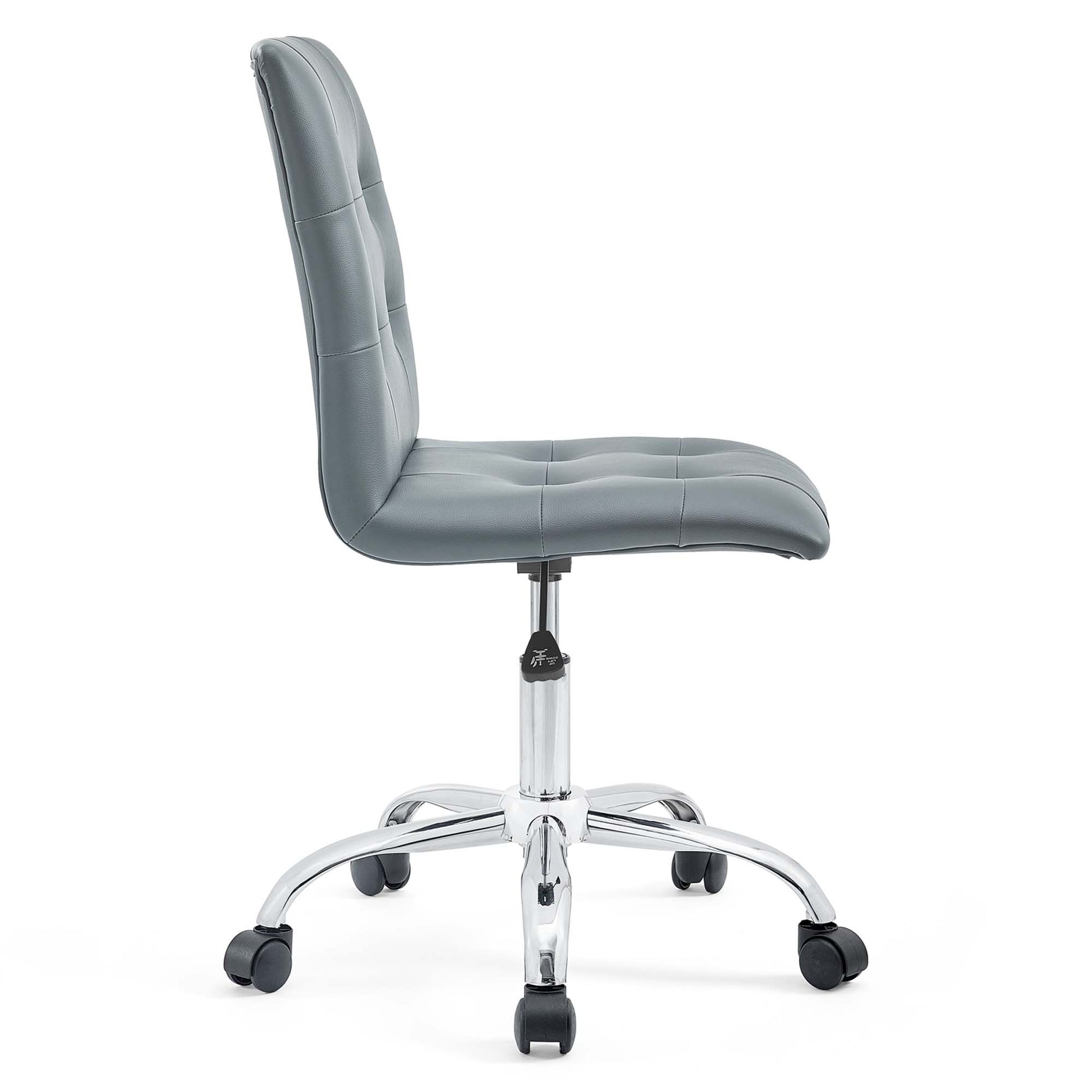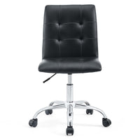 Etiquette presides over the properly styled Prim armless office chair. Modern to the touch, luxurious to the eye, Prim features deep tufted buttons, skilled faux leather upholstery, and elegant trim for added finesse. Prim is height adjustable, swivels to a 360 spin, and comes outfitted with a polished chrome steel base with five dual-wheel nylon casters. Perfect for conference rooms, workstations, or desks, Prim is a modern piece that works admirably to further the finer civilities of life.