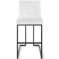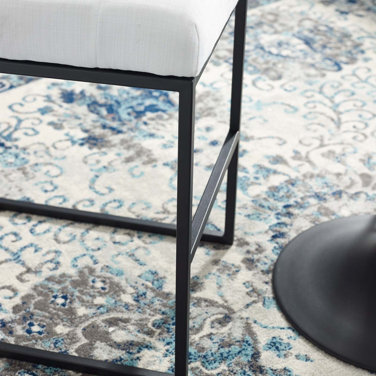 Maximize your dining room decor with Privy. A glam deco bar stool, Privy features soft and durable fabric upholstery for a streamlined modern look. This stylish bar stool rests atop a sleek matte black stainless steel geometric base with a footrest that will elevate your bar and dining experience. No assembly required. Bar Stool Weight Capacity: 331 lbs.