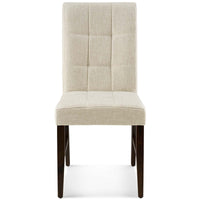 Experience the subtle mastery of the Promulgate Parsons Dining Side Chair Set of 2. Elegant biscuit tufting creates a square pattern adding visual depth and classy appeal. Promulgate features a densely padded foam seat covered in soft and durable polyester upholstery and bolstered with a sinuous spring support system. Supported by a solid wood frame and side stretchers, Promulgate rests securely on four rubberwood legs with non-marking foot caps in this timeless fabric dining chair for the modern home or apartment. Chair Weight Capacity: 331 pounds each